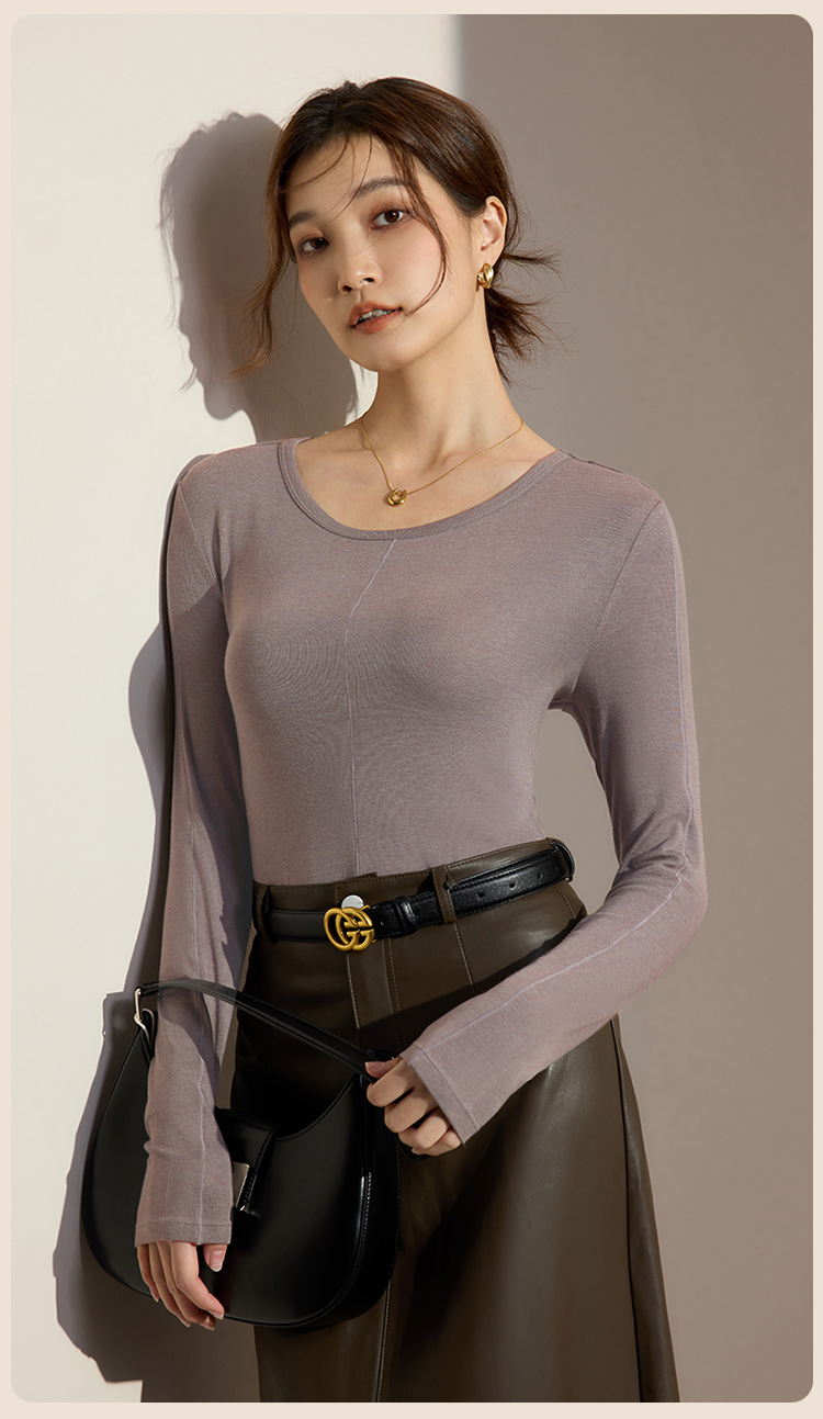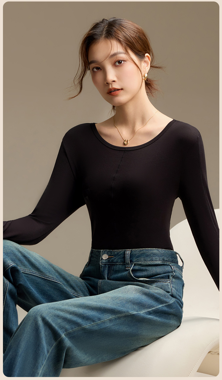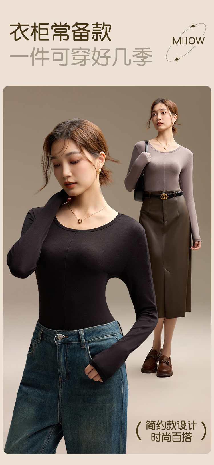 【M-2XL】【猫人】女士长袖打底衫圆领T恤