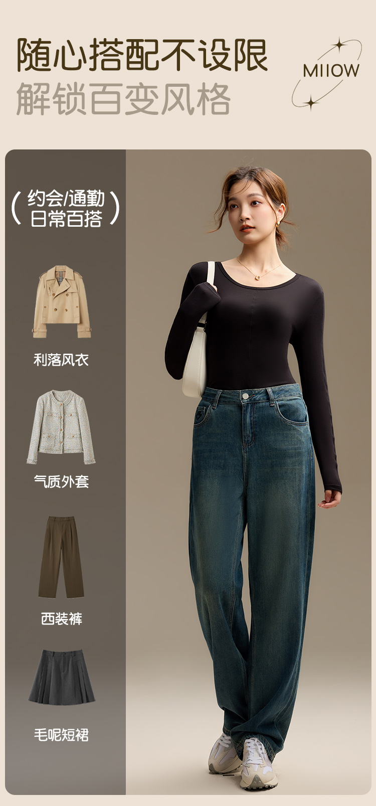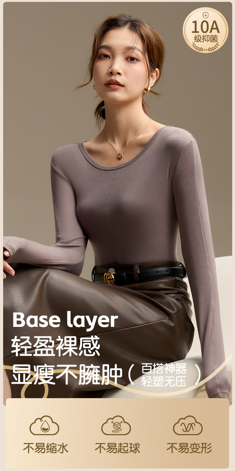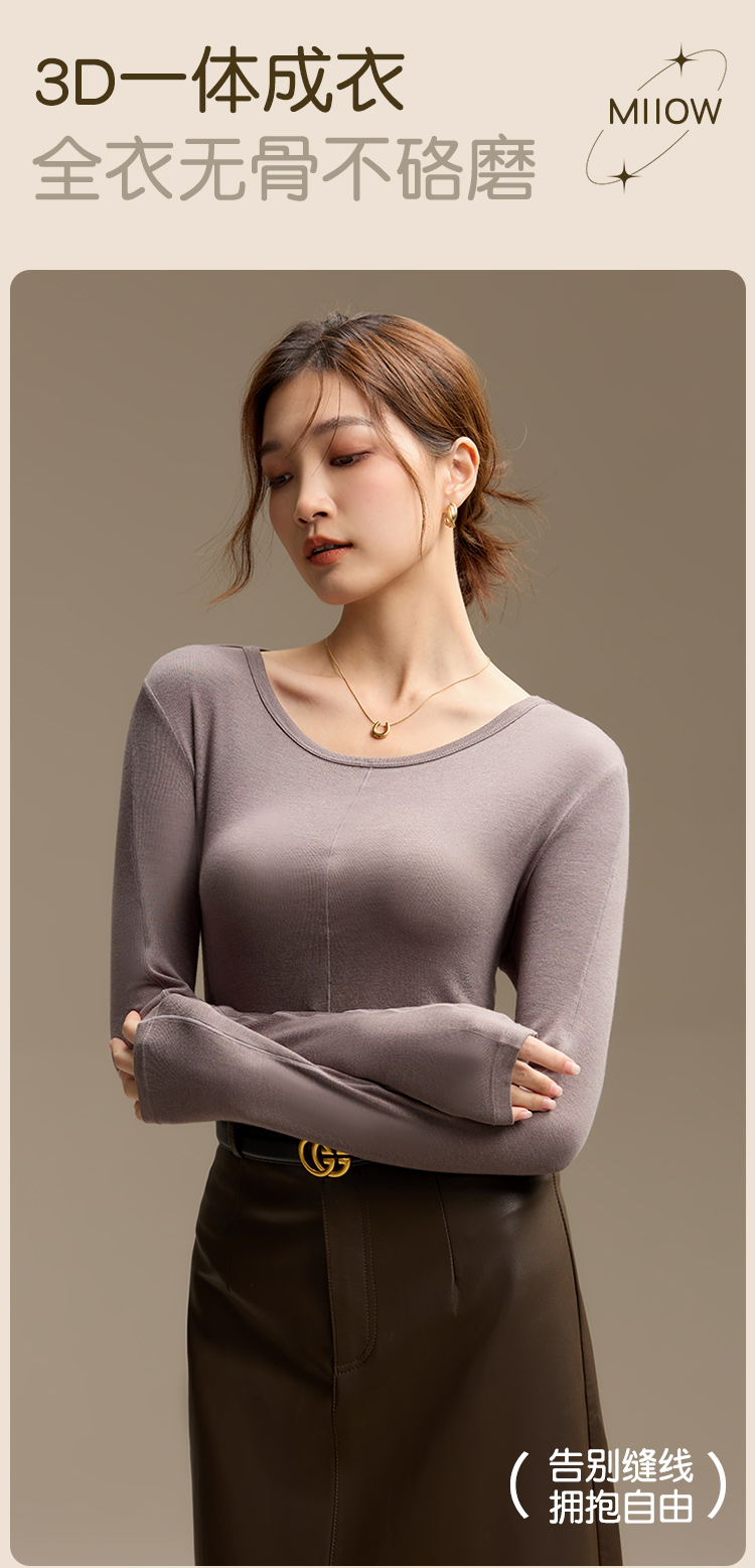 【M-2XL】【猫人】女士长袖打底衫圆领T恤