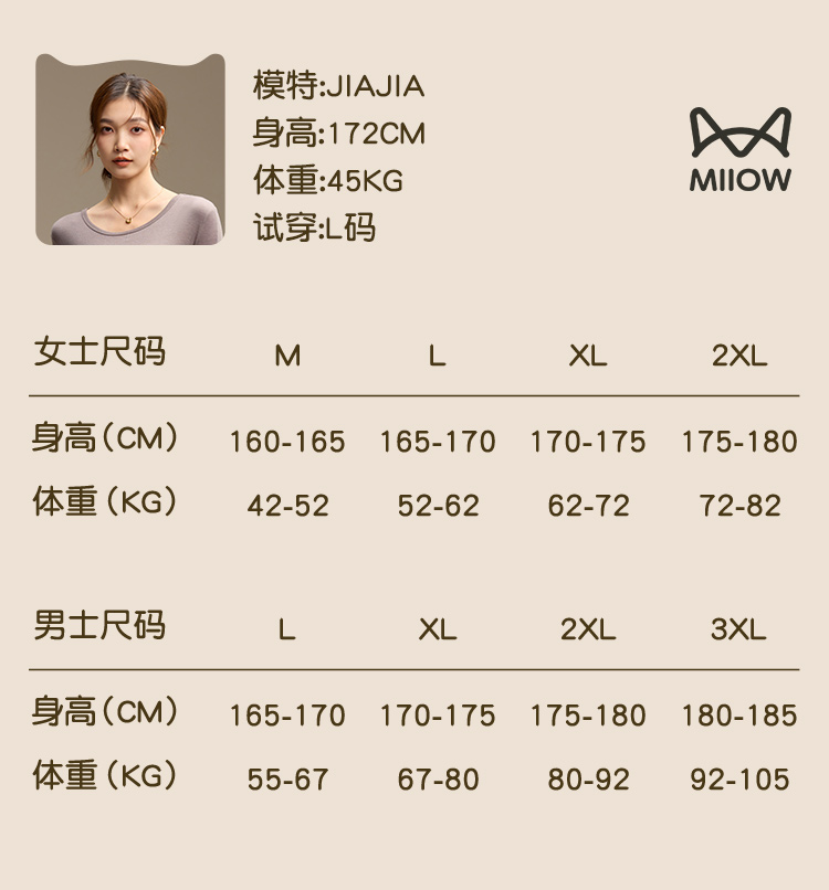 【M-2XL】猫人女士冬款纯棉保暖内衣套装