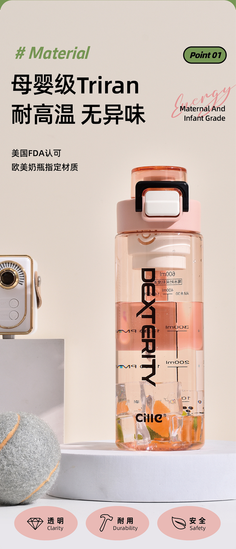 希乐丽坊水杯XL-2427(棕色)/1个(600ml)