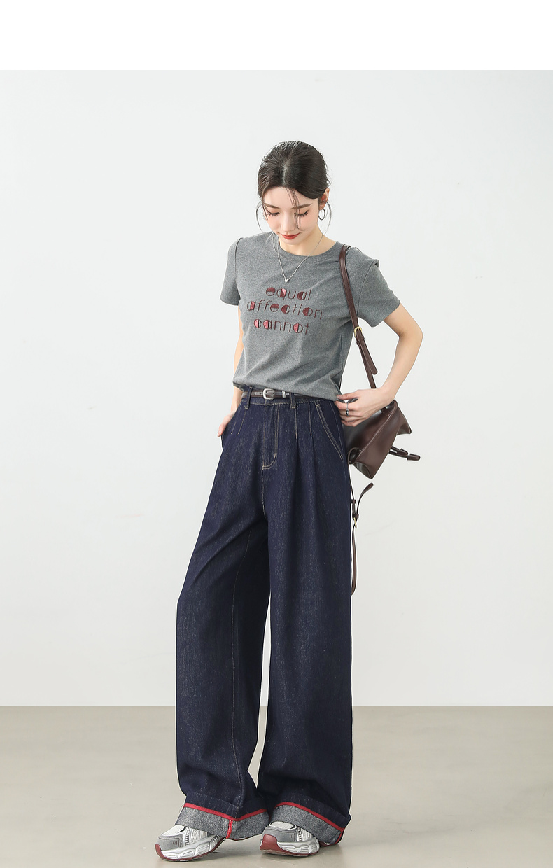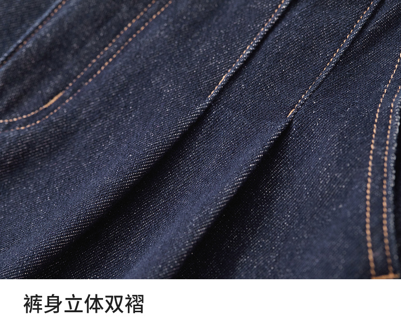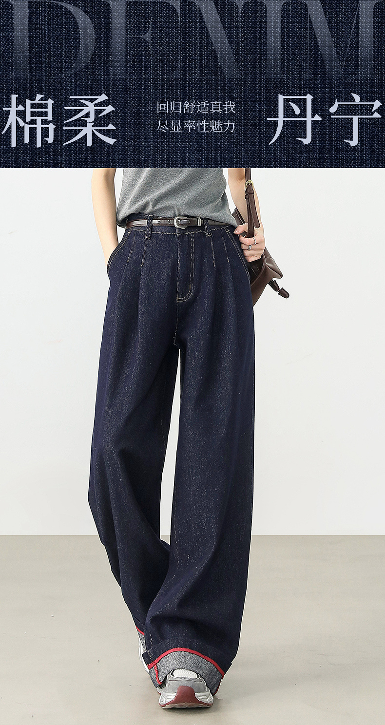 【尚都比拉】【黑科技防掉色】通勤丹宁梨型身材双褶撞色翻边窄版阔腿牛仔裤-W51N58828