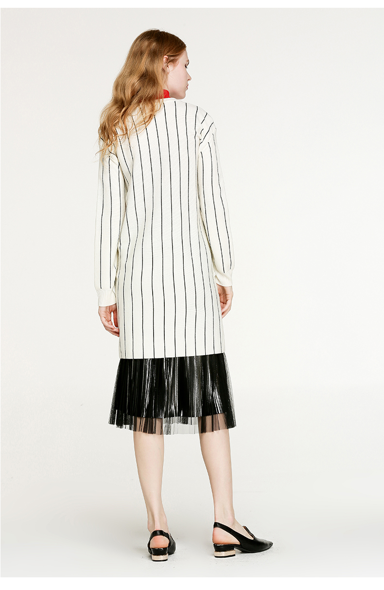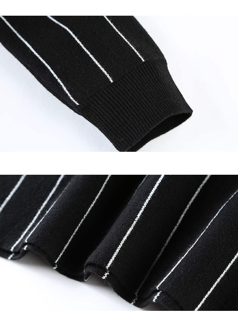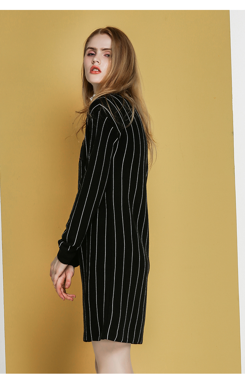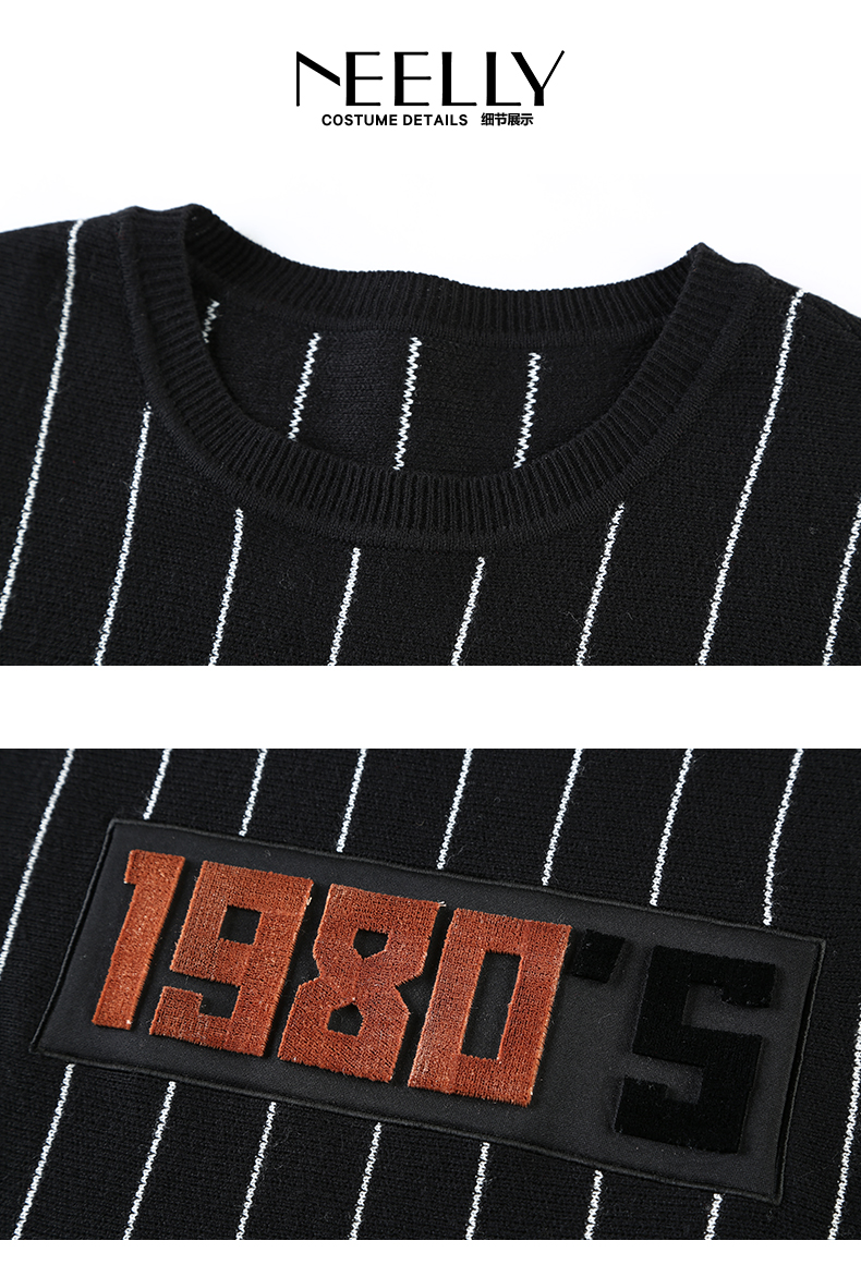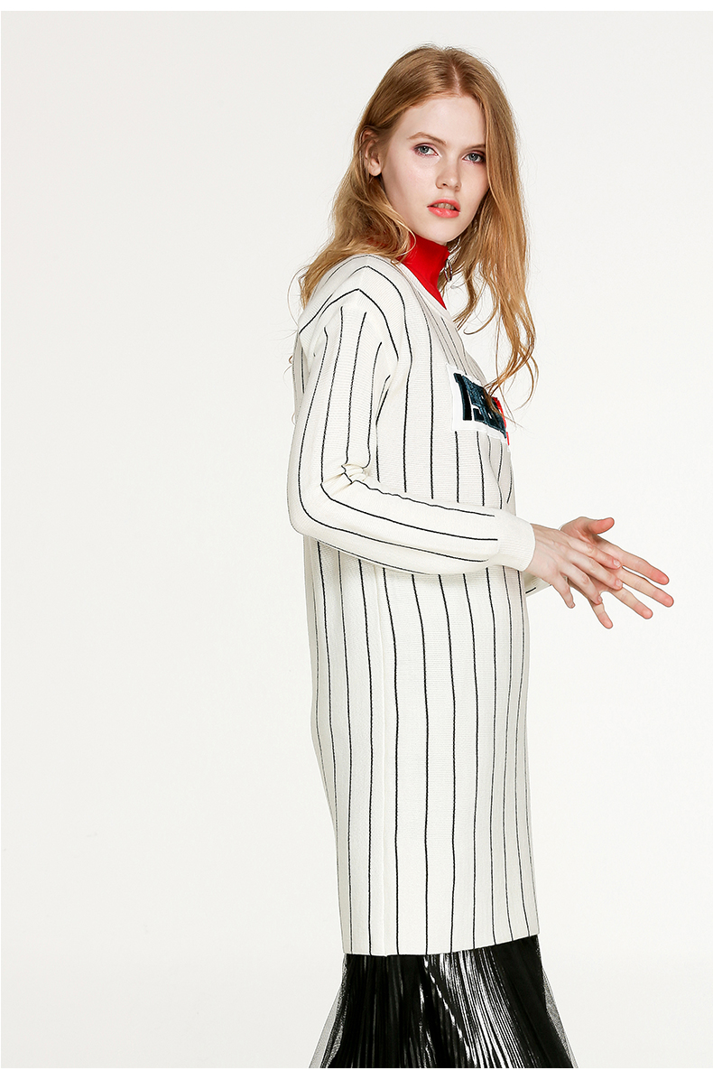 NEELLY纳俪冬装新款条纹长款裙子字母刺绣印花修身显瘦连衣裙N066809026