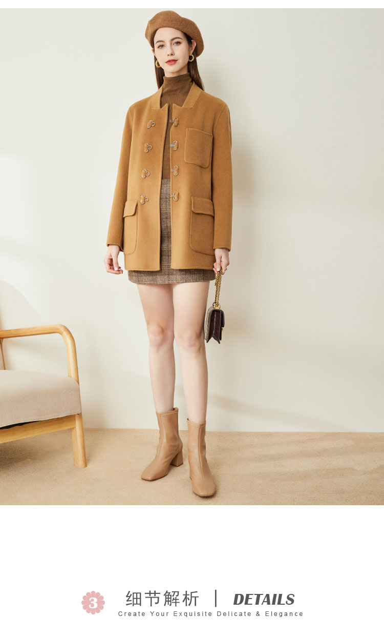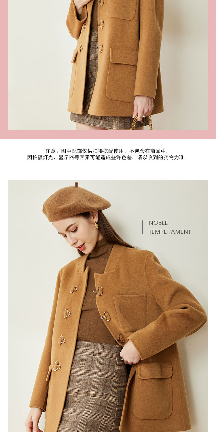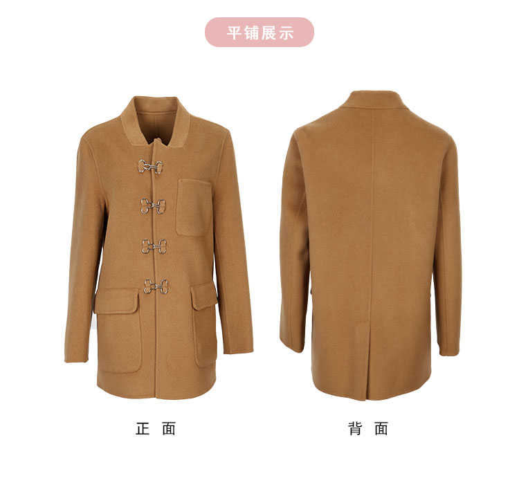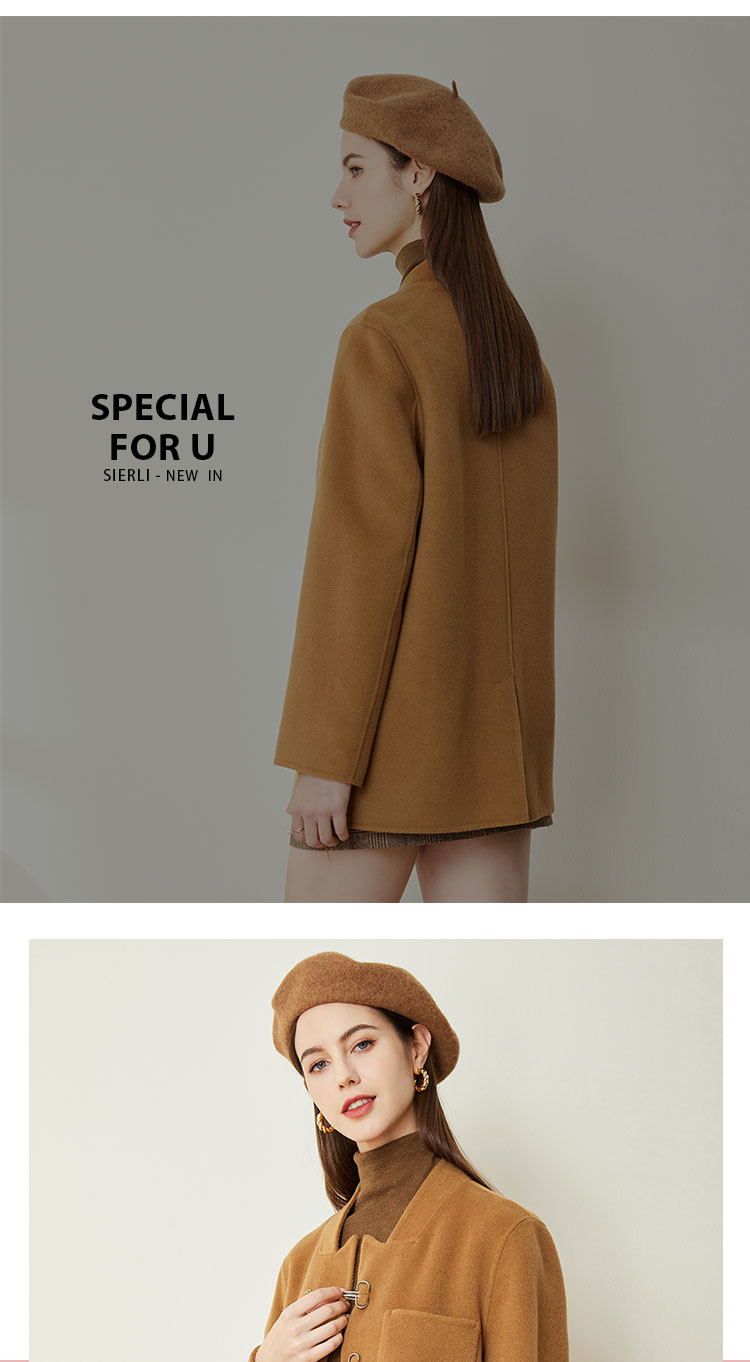 LH9V9斯尔丽瑟俪2021秋冬新款设计感时尚扣直筒显瘦羊毛双面呢短大衣
