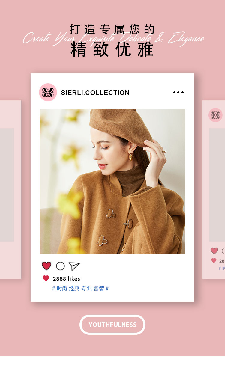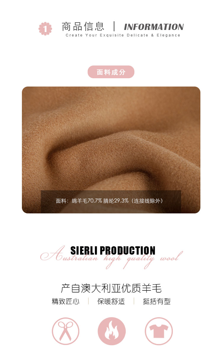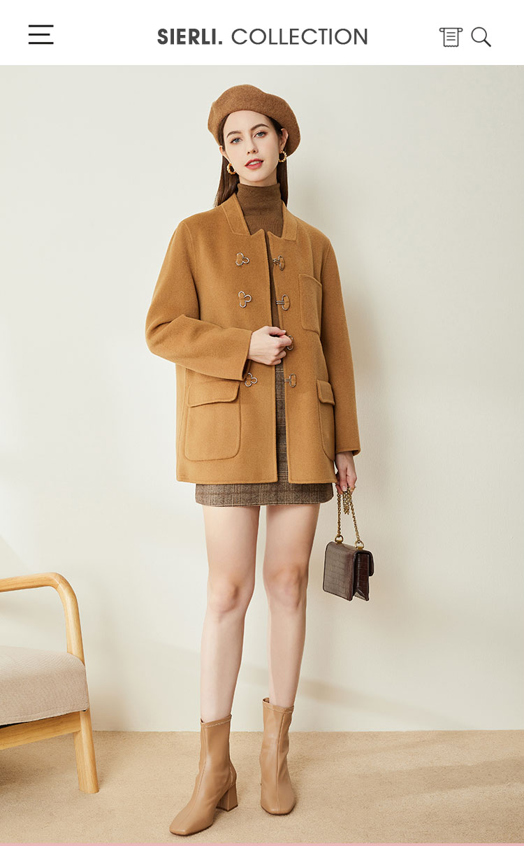 LH9V9斯尔丽瑟俪2021秋冬新款设计感时尚扣直筒显瘦羊毛双面呢短大衣