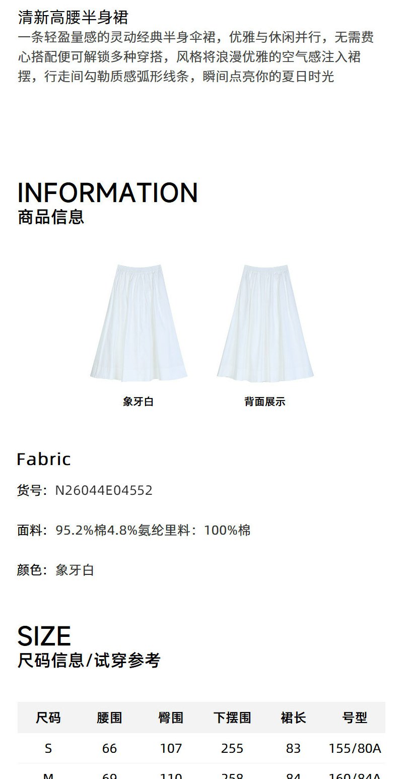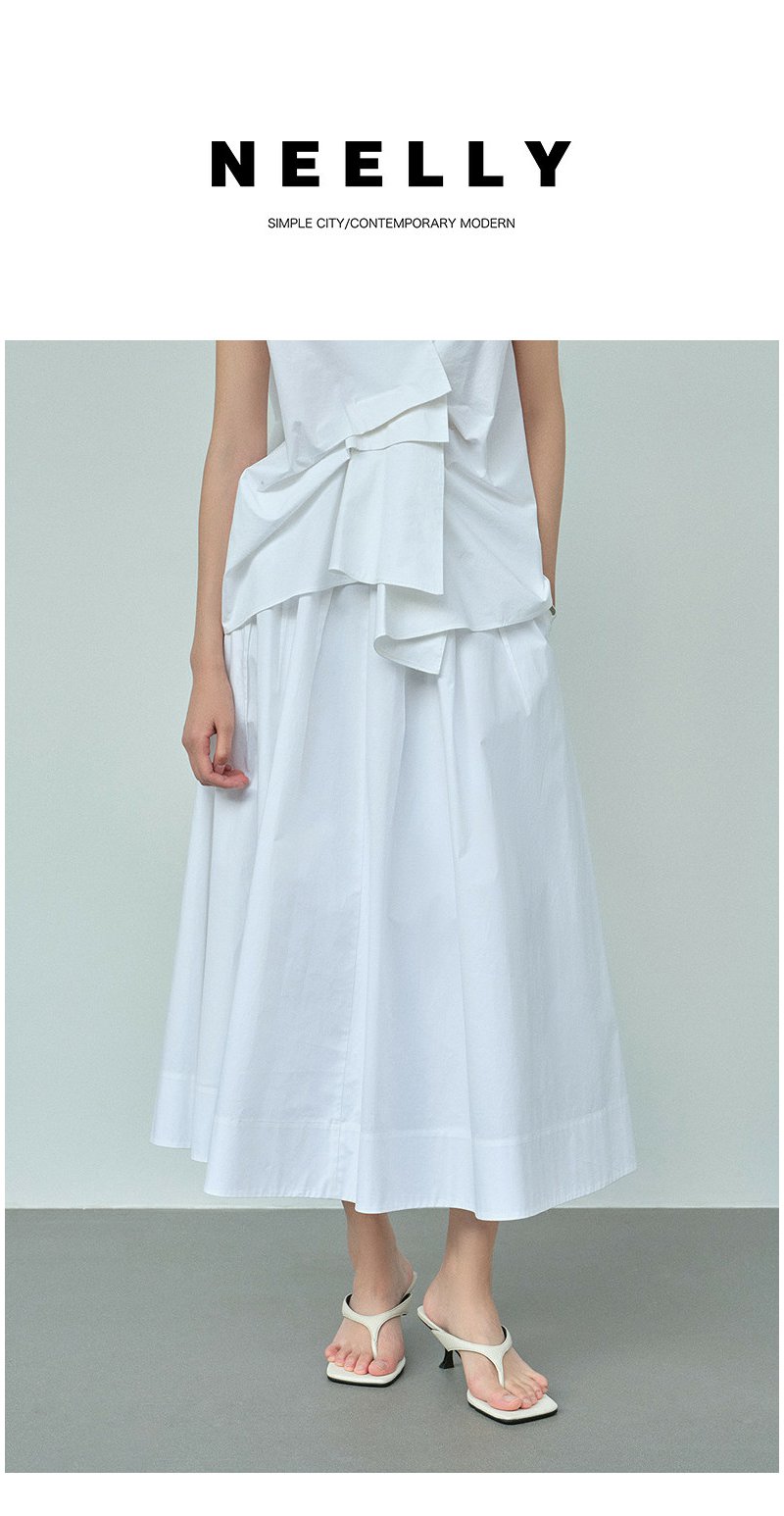 NEELLY纳俪商场同款夏季新款白色清新优雅半身裙女显瘦气质大摆裙N26044E04552