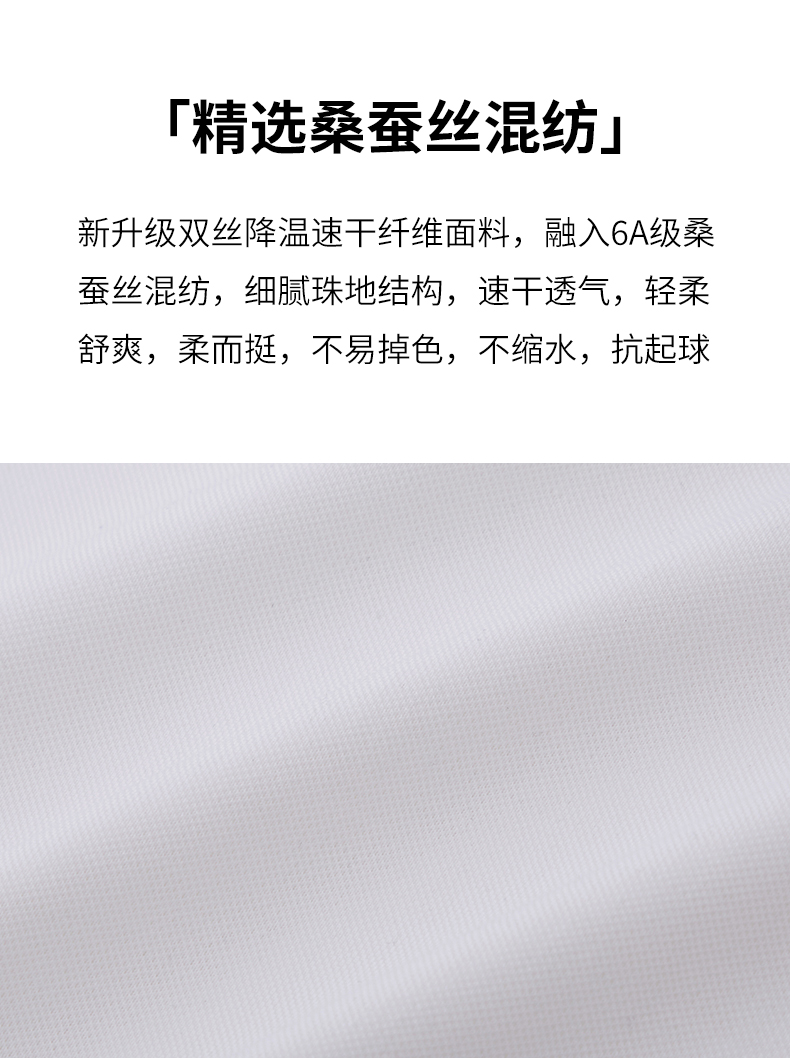 | 材质成分: 棉50.9% 聚酯纤维37.4% 桑蚕丝8% 聚氨酯弹性纤维(氨纶)3.7% |