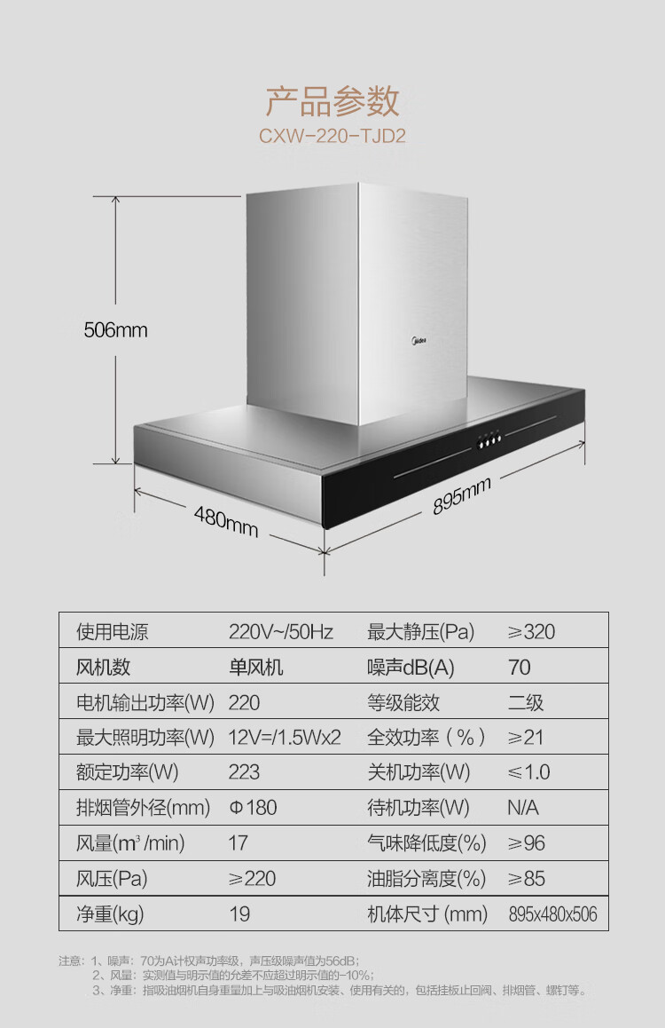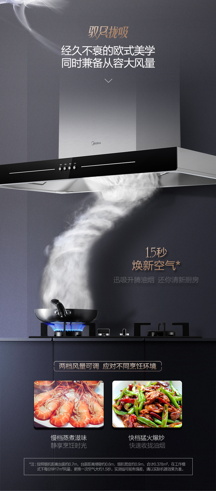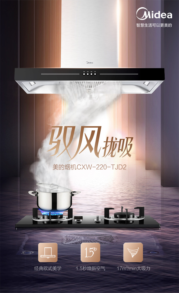 IBF艾博菲美的_Midea_CXW-220-TJD2油烟机_17m?大吸力_欧式_家用抽油烟机【K】