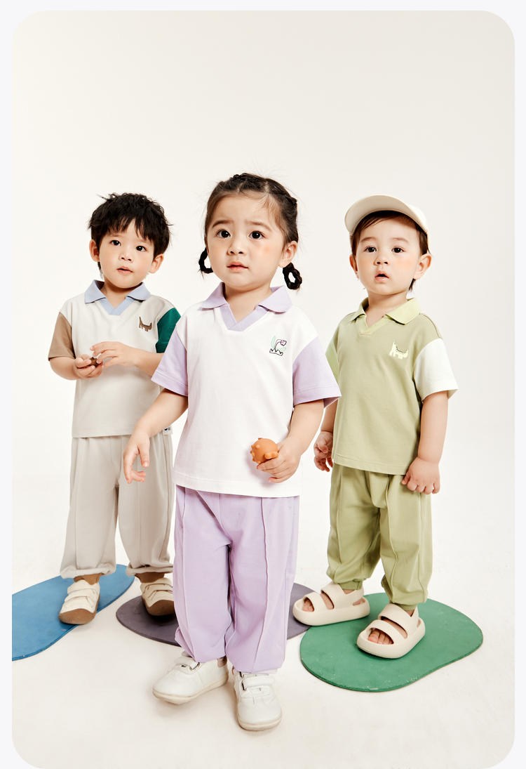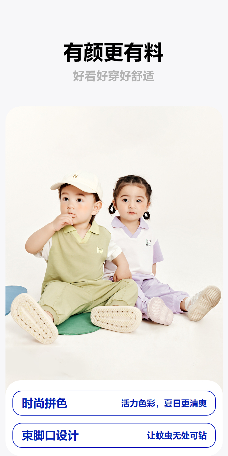 【凉感抗菌】迷你巴拉夏款男童女童运动套装宝宝洋气短袖套装