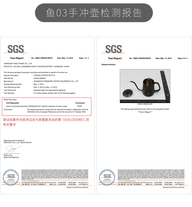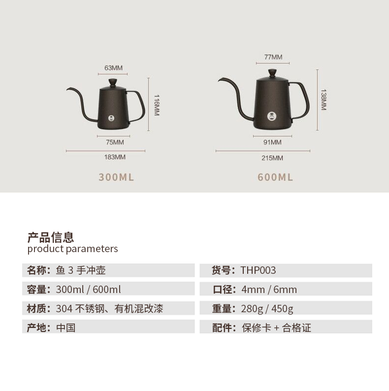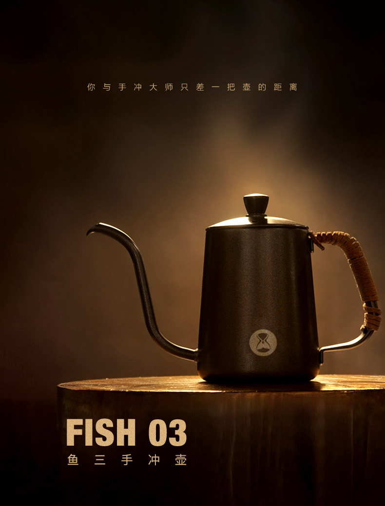泰摩 鱼三手冲咖啡壶 鱼3挂耳冲泡壶304不锈钢滴漏式家用长嘴壶