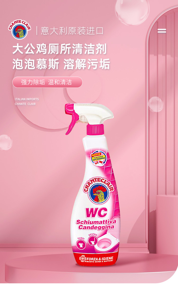 【一般贸易】大公鸡管家 马桶洁厕剂泡沫型625ml(粉色漂白款)*2瓶