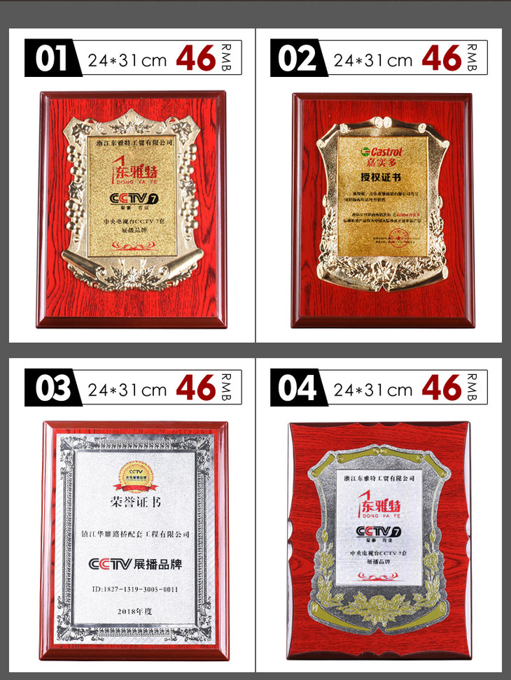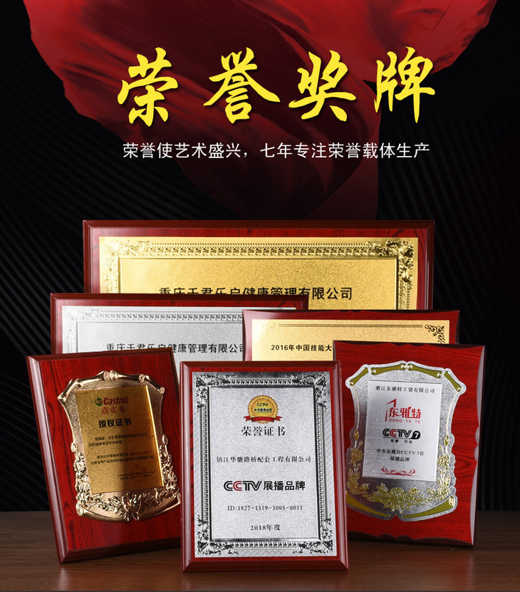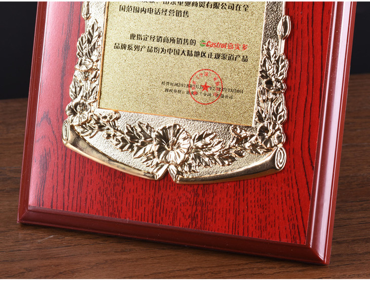 金箔奖牌授权牌荣誉牌牌匾定做制作木托铜牌木质证书代理奖牌定制