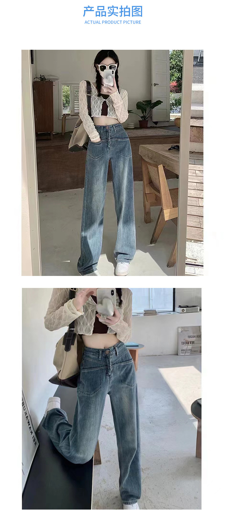 夏季新款时尚阔腿高腰牛仔裤高弹力显瘦遮肉阔腿裤女裤垂感拖地裤