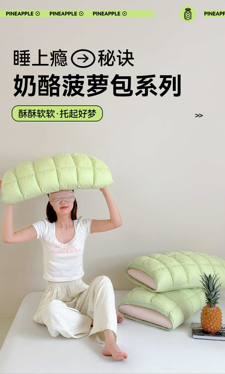 顶柔奶酪菠萝包枕头,面料手感软糯舒适承托肩颈,释放一天压力