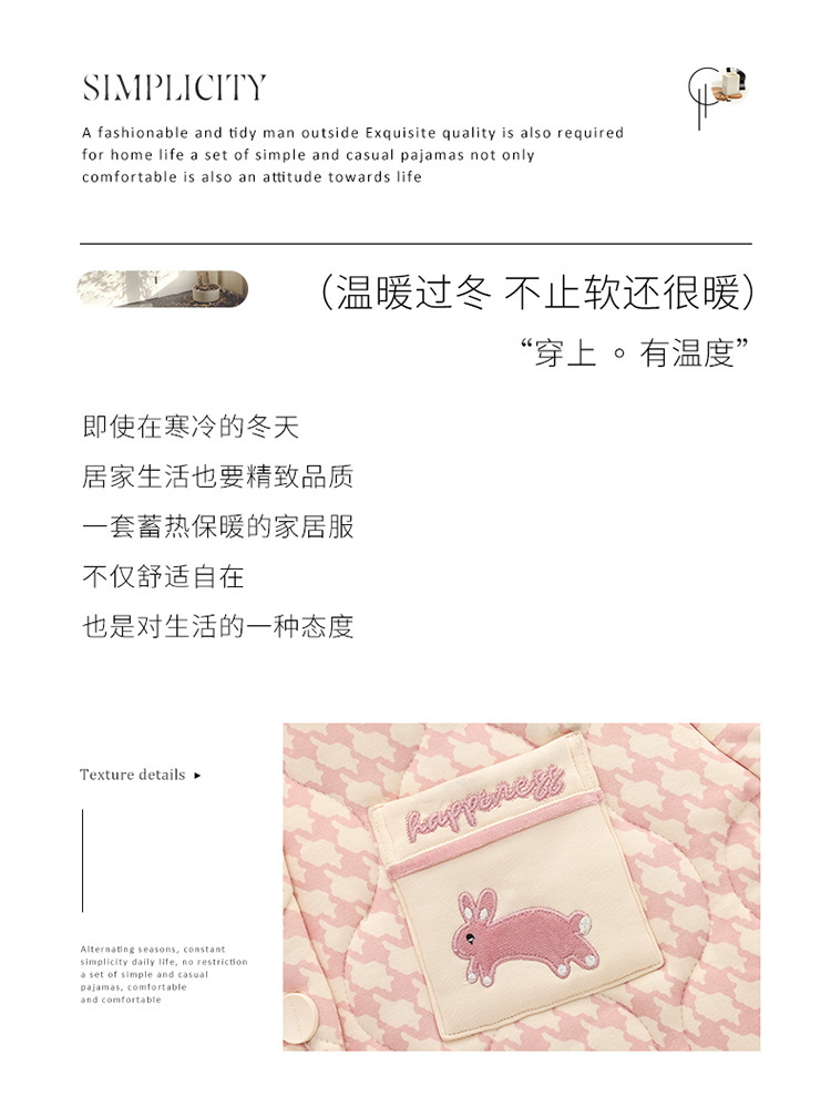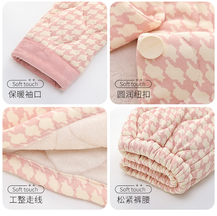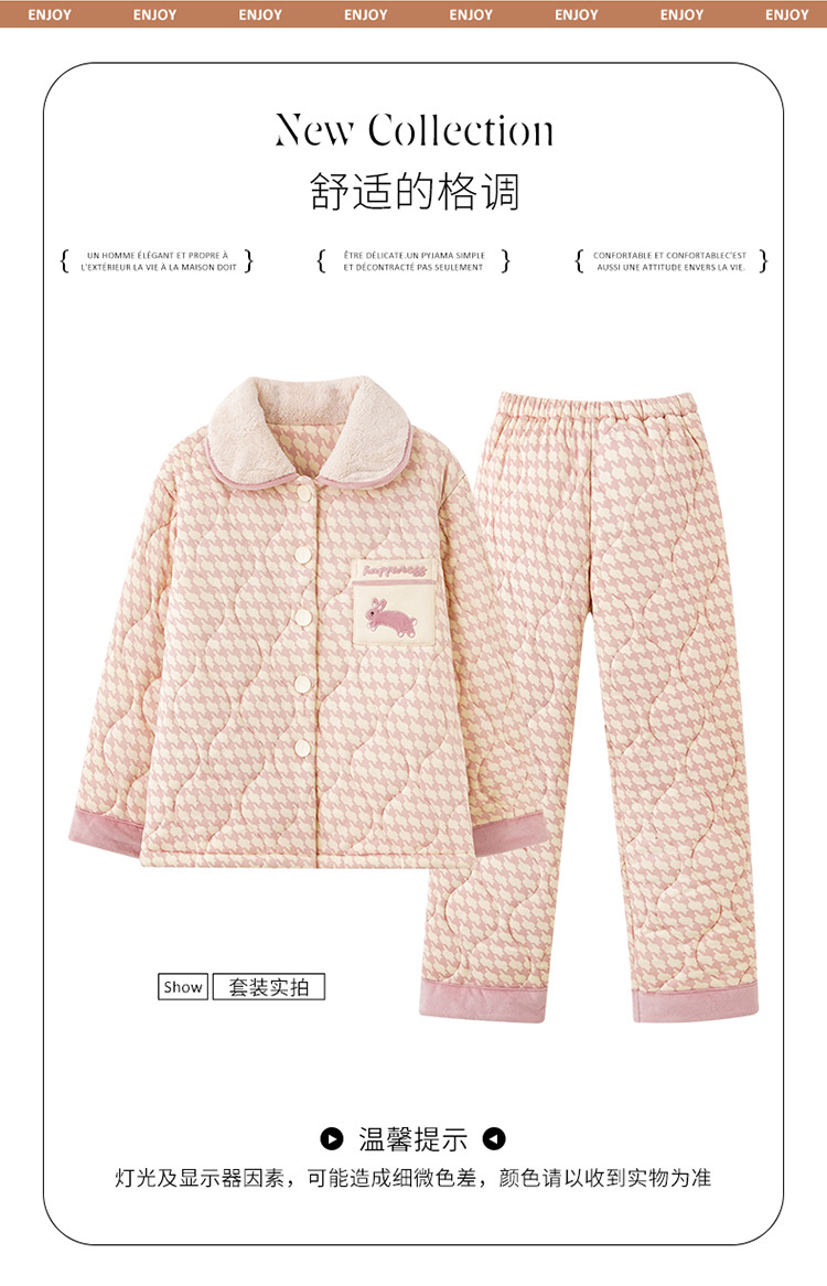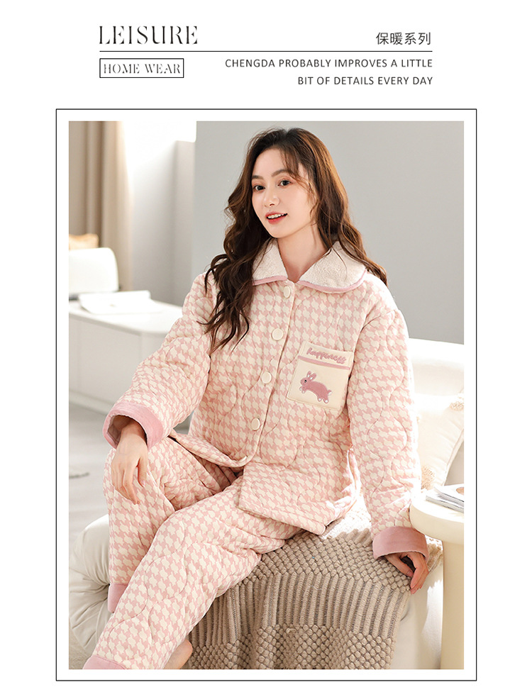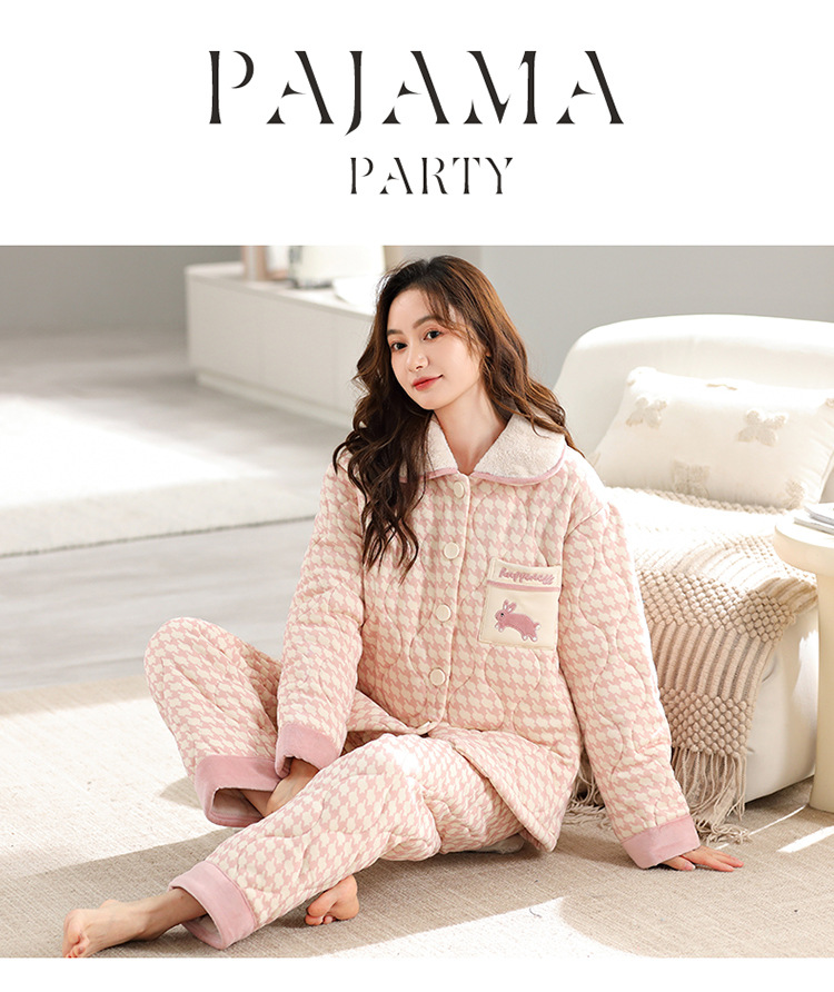2023年新款针织三层夹棉睡衣女士冬季加厚保暖韩版宽松家居服套装