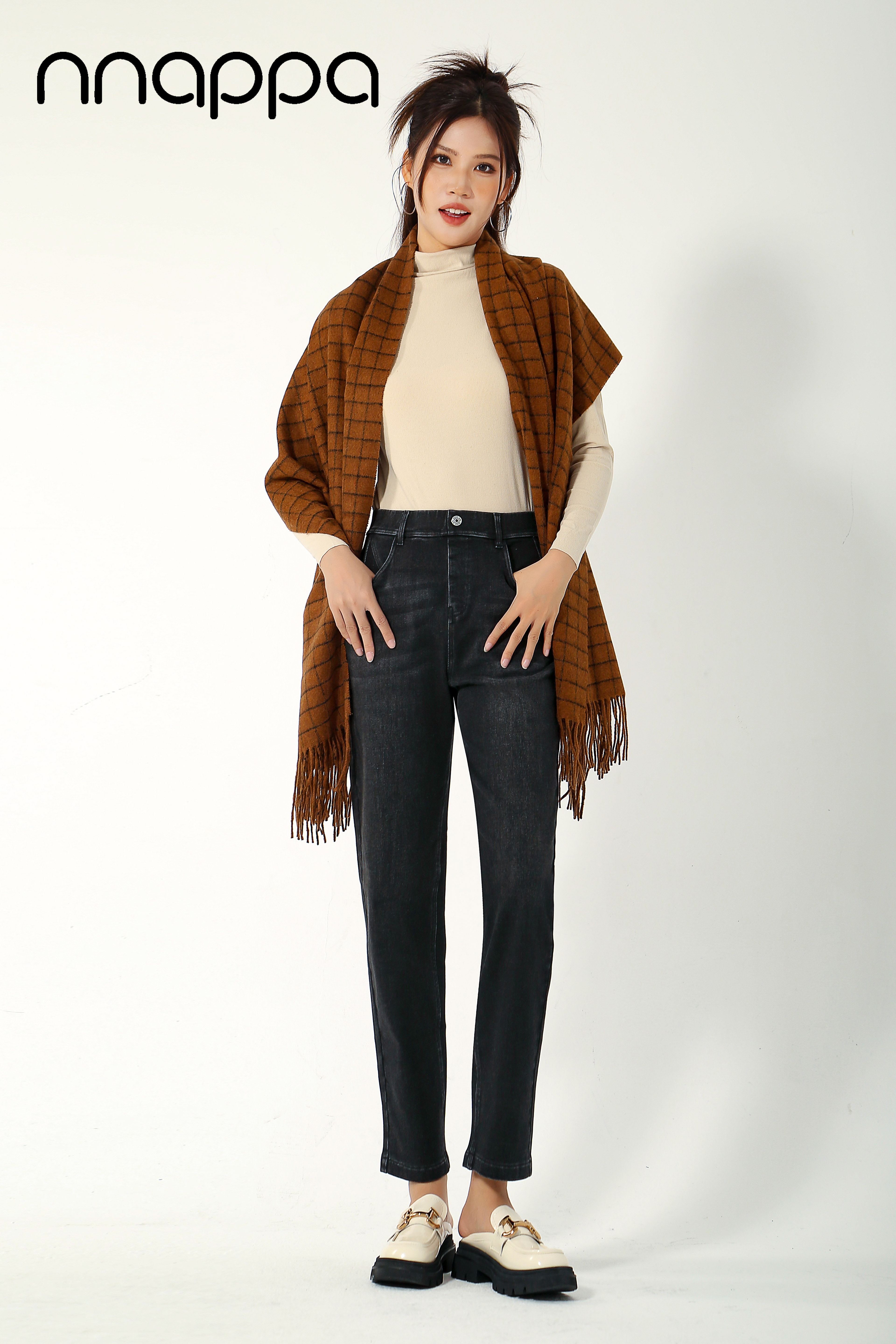 梭织弹力磨毛老爹牛仔裤PA29265