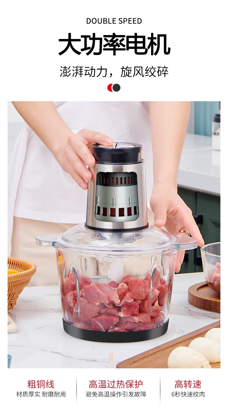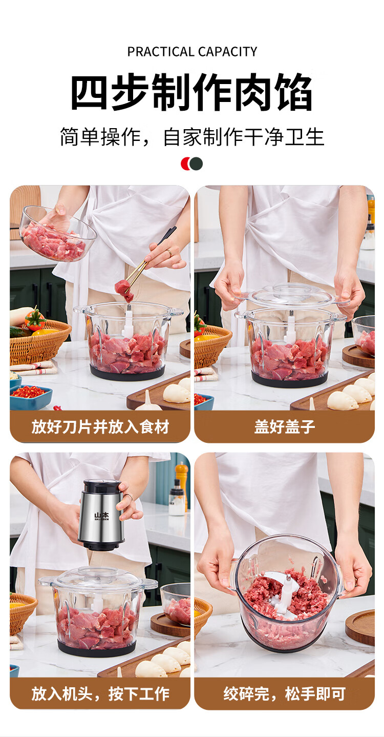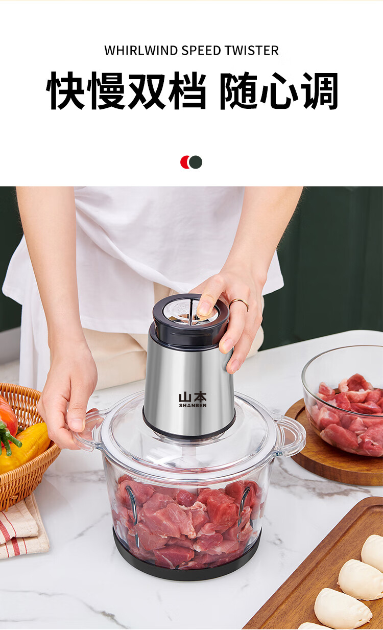 【品牌补贴69.9元】【质保一年】山本绞肉机 4 叶旋风刀双档速绞 加厚玻璃不串味