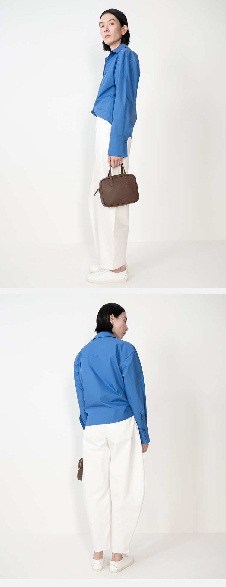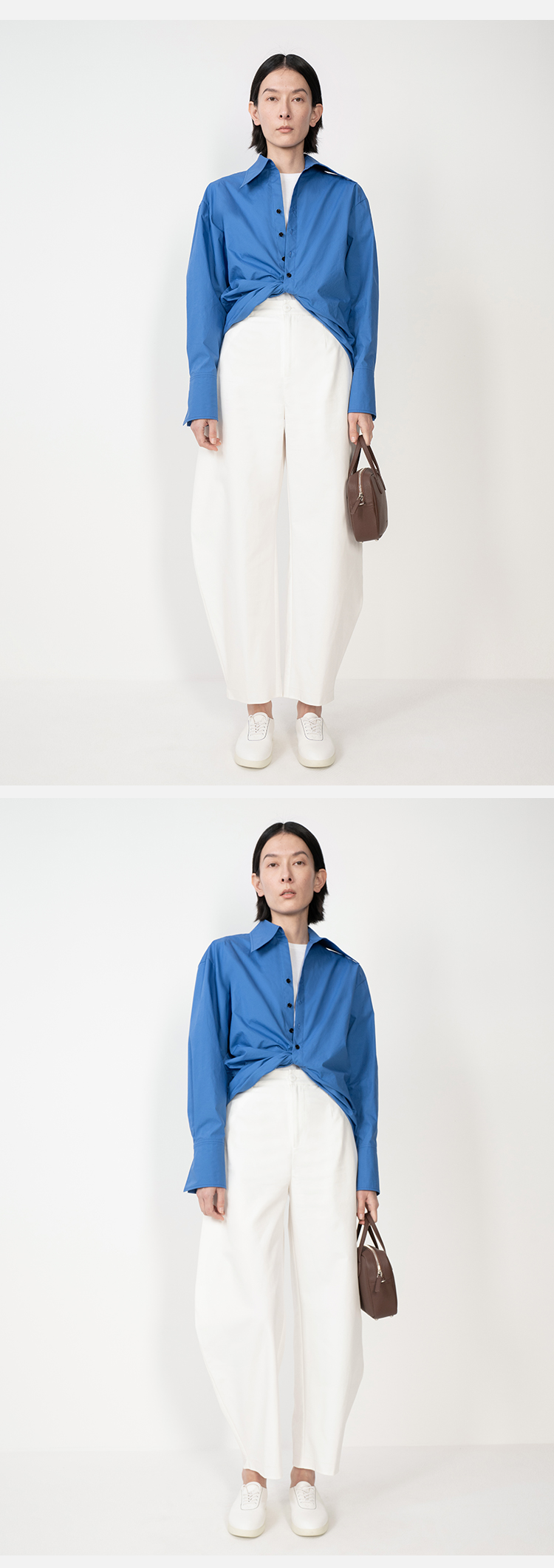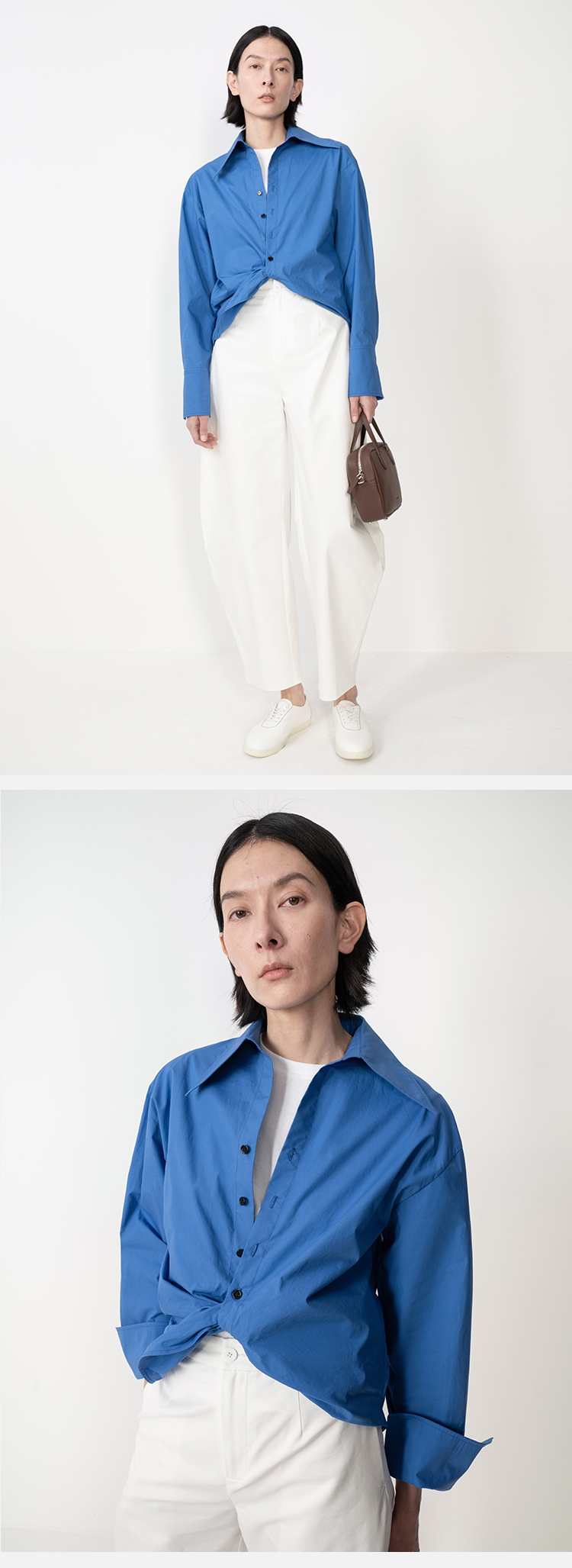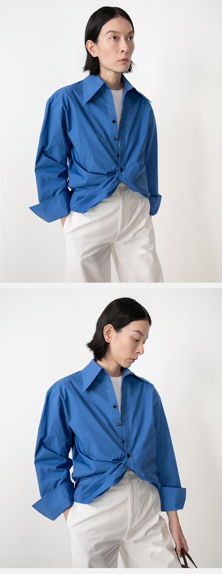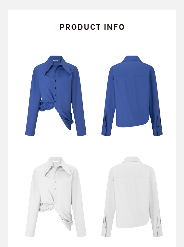 HIDEMI 极简设计感不对称扭结收腰短款衬衫