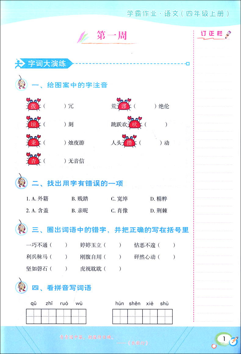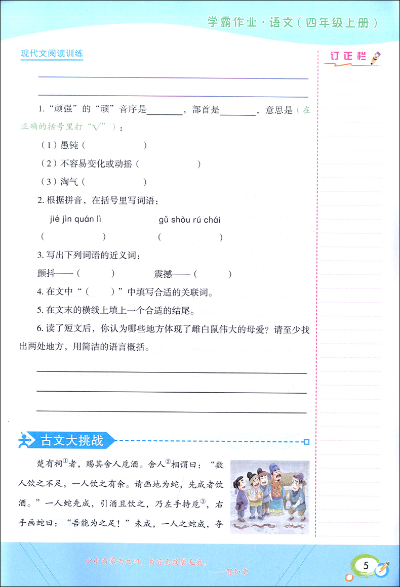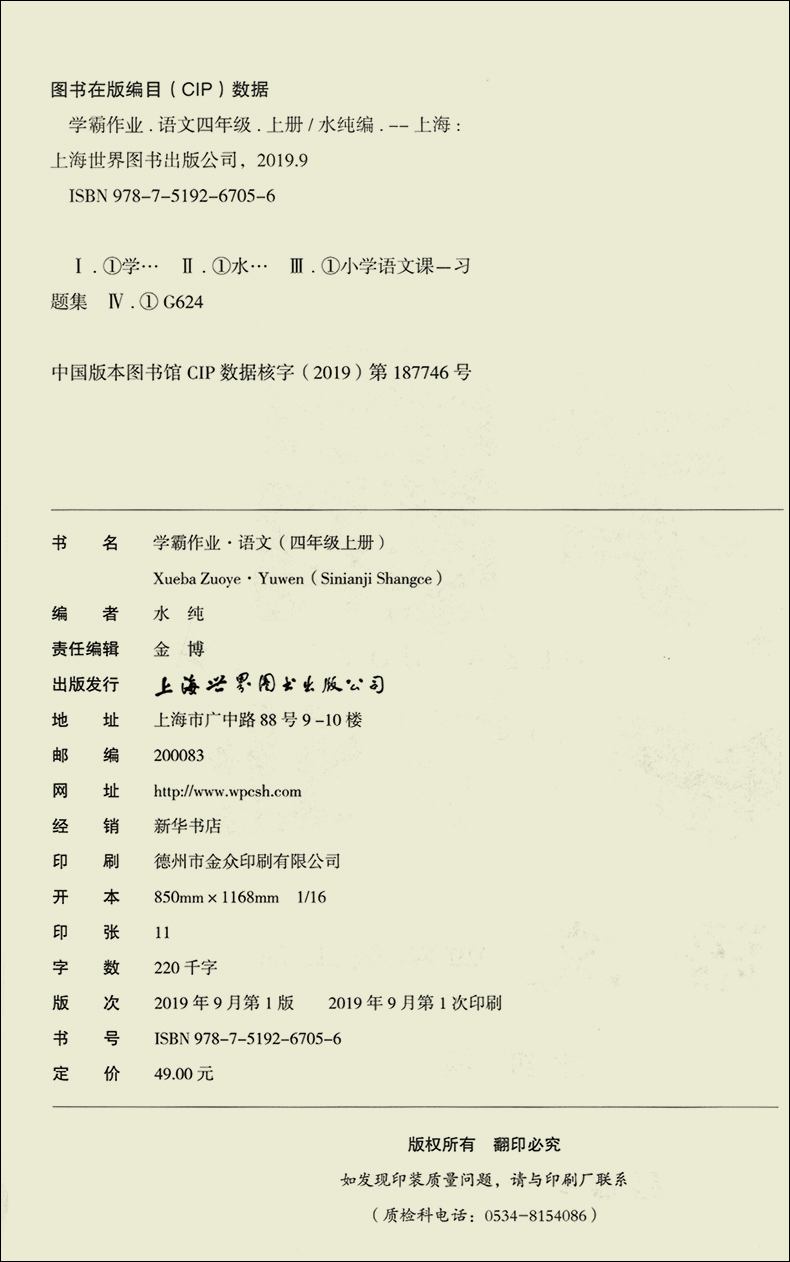 学霸作业 四年级上册/4年级第一学期 语文 含测试卷 与新教材配套五四学制上海新教材配套