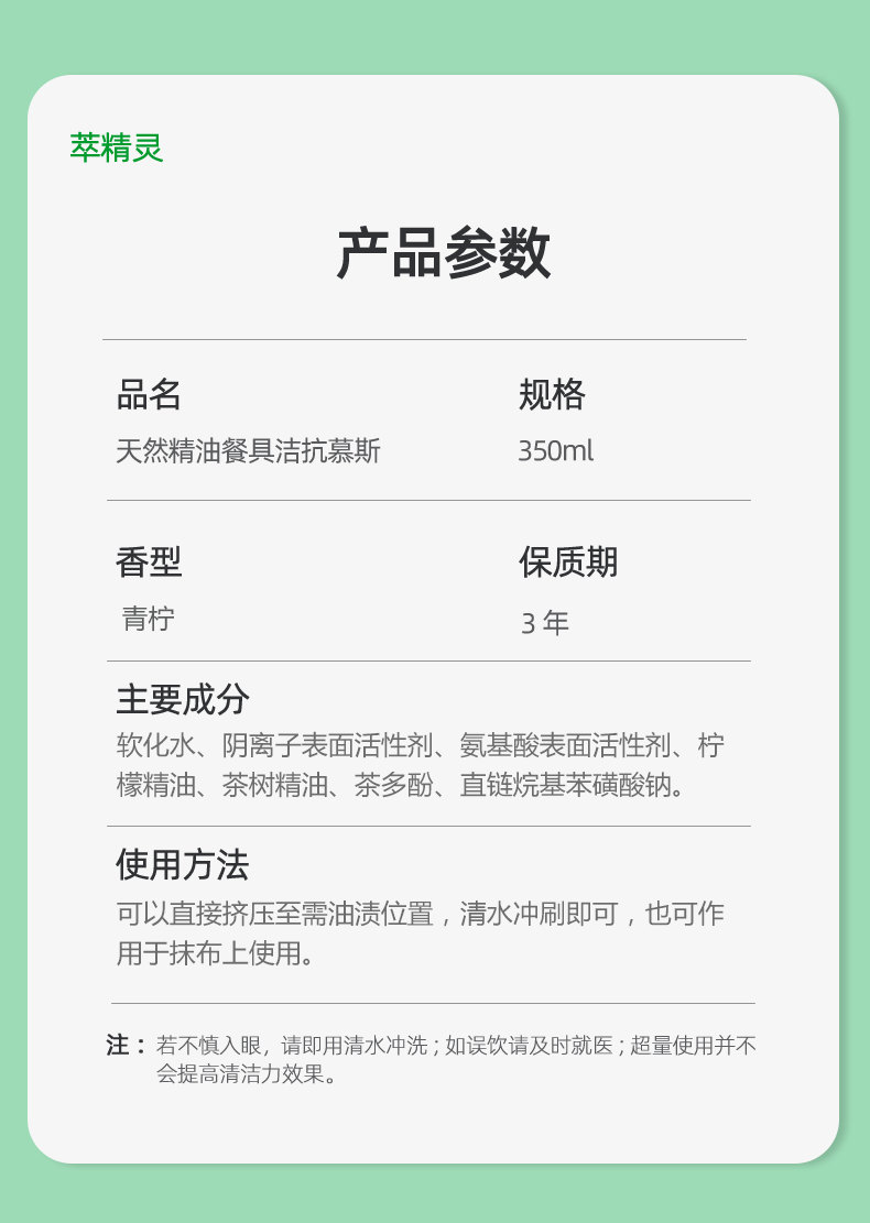【萃精灵】天然精油餐具洁抗慕斯 350ml/瓶
