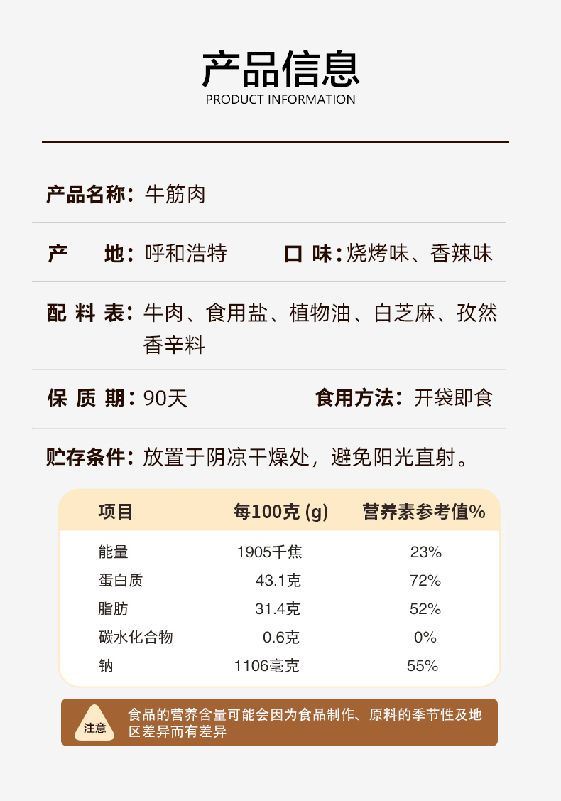 内蒙古牛筋肉 干而不柴 劲道十足 125g/袋