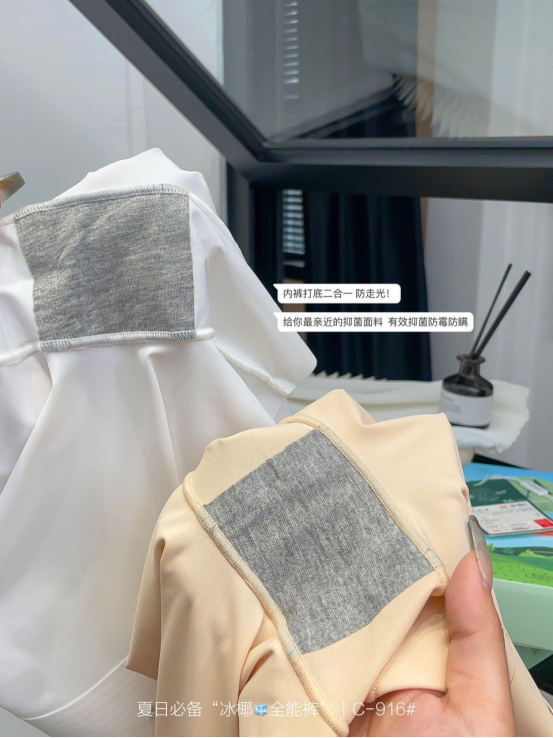 测试①别看着它以为很厚,其实它比普通的冰丝安全裤还要轻薄, ✅完全不会有那种“湿哒哒扒在身上”的厚重感!