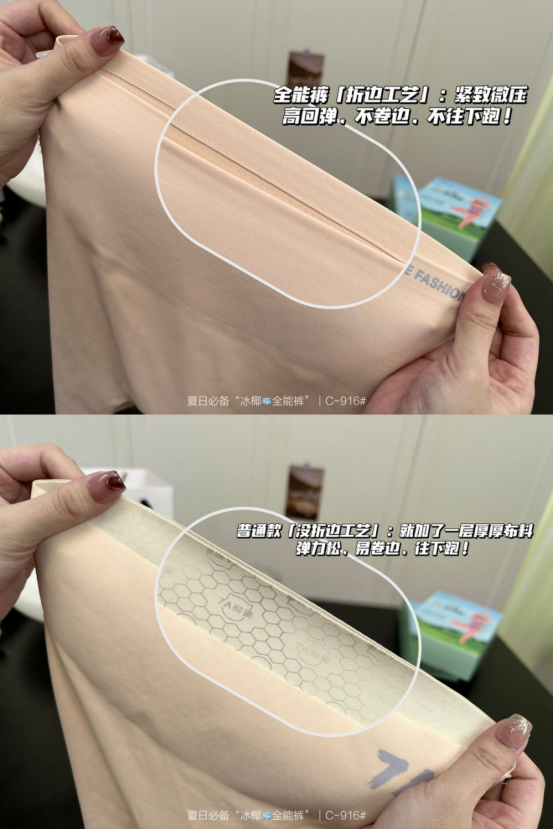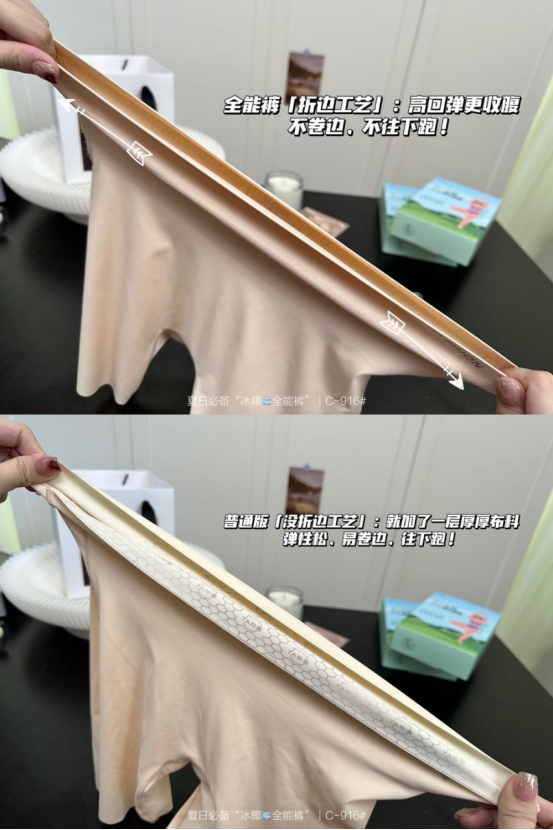必看高端无痕折边腰头工艺腰头不往下跑不卷边更收腹!!! 不少姐妹最最头疼的问题,买到了普通版, 虽然有加了一层厚厚的布料,但只是摆设, 不仅不收腹,而且走路啪啪往下跑,卷边卷得好厉害