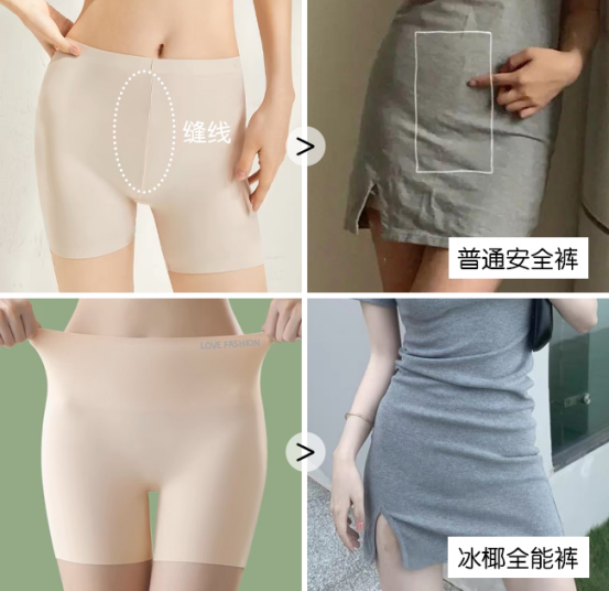 不少姐妹在呼唤我,市面的安全裤穿不得, 来个王炸款有么?就等我们团了!哈哈 要无痕, 但能不能做到不往下跑,不卷边? 能不能多功能一点? 不想多穿两条好闷热! 如果可以,能收腹提臀那就更完美了! 的确,穿安全裤的苦只有女生懂… 两层布料加持大热天里捂得全是汗内裤+安全裤+收腹裤, 三层叠加更是要命潮湿闷热的私处成为细菌疯狂繁殖的温床! 今天介绍这款【简出色冰椰全能裤】