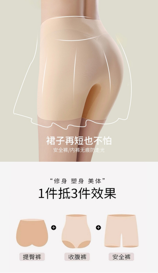 针对最重要部位▼无痕超隐形底裆➕抑菌面料一件让自己心安的安全裤不能少, 即能当安全裤,又是抑菌档内裤,免穿内裤,高效抑菌,透气舒爽不闷热!
