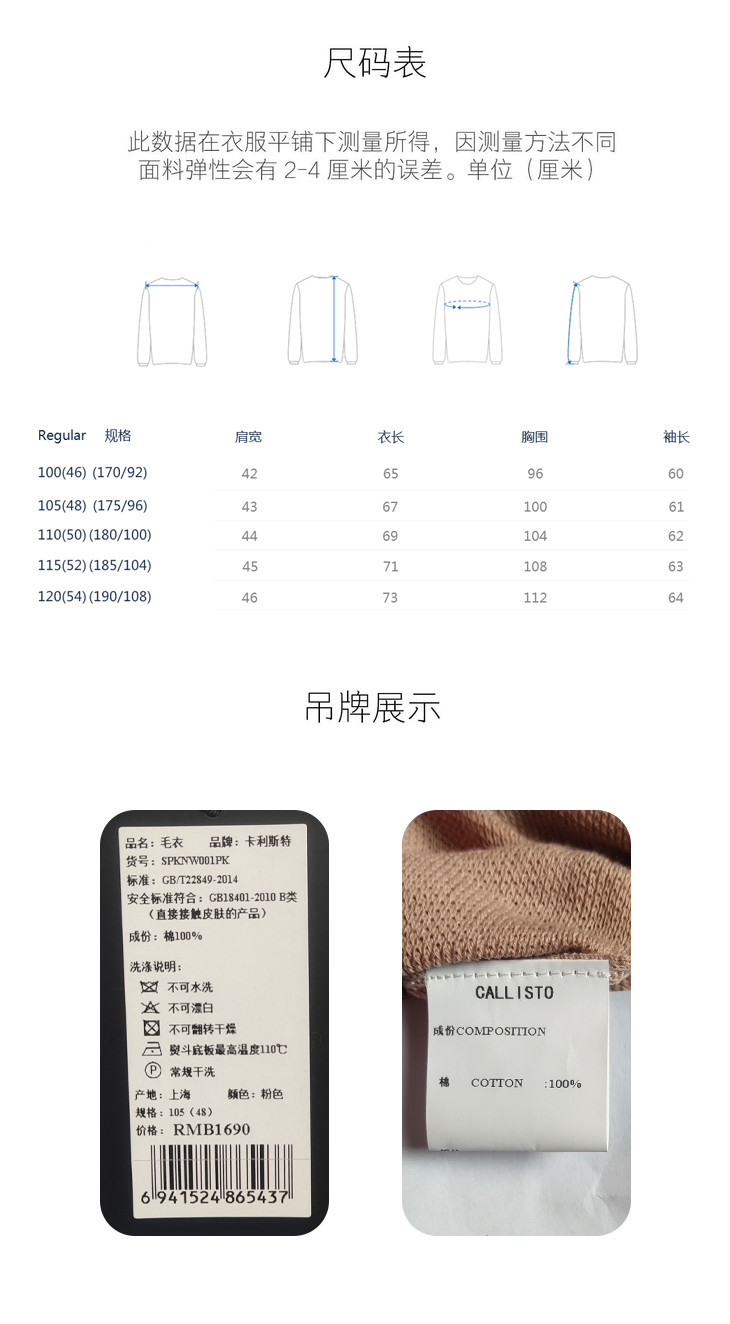 callisto基本款长袖棉毛衣 SPKNW001PK