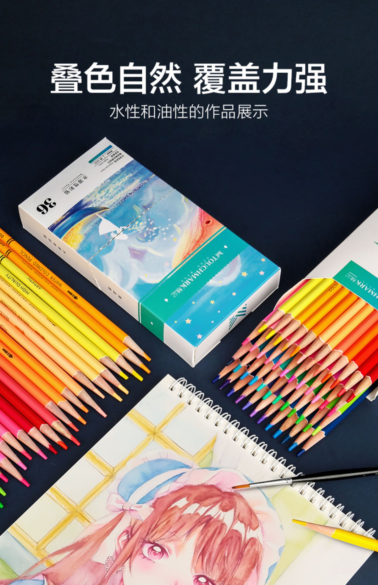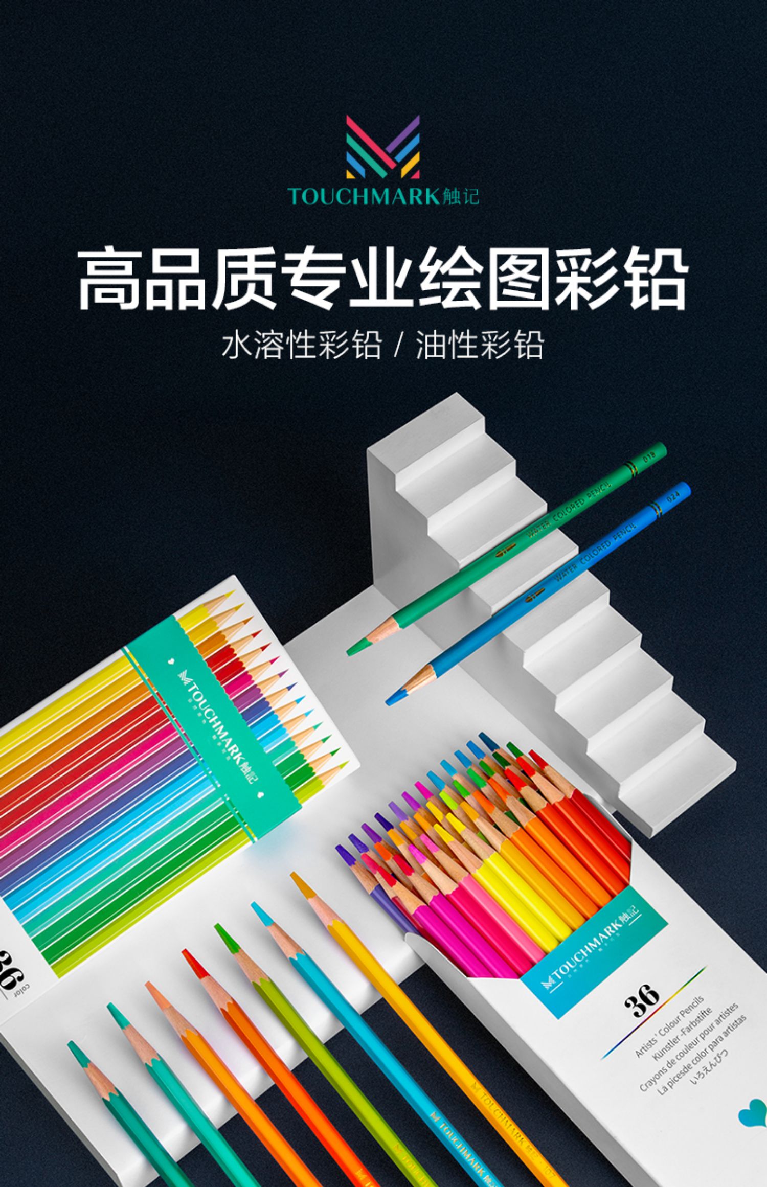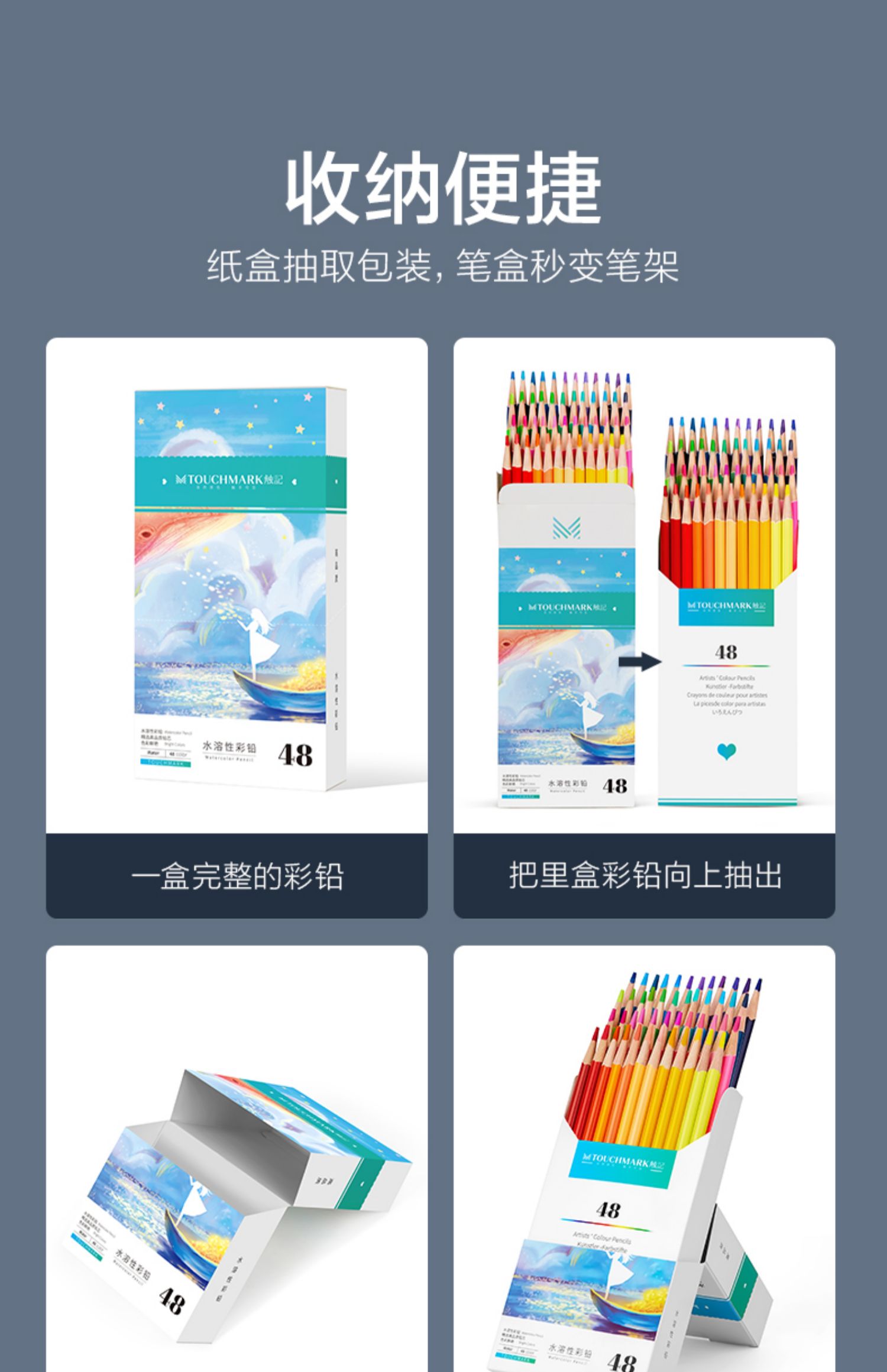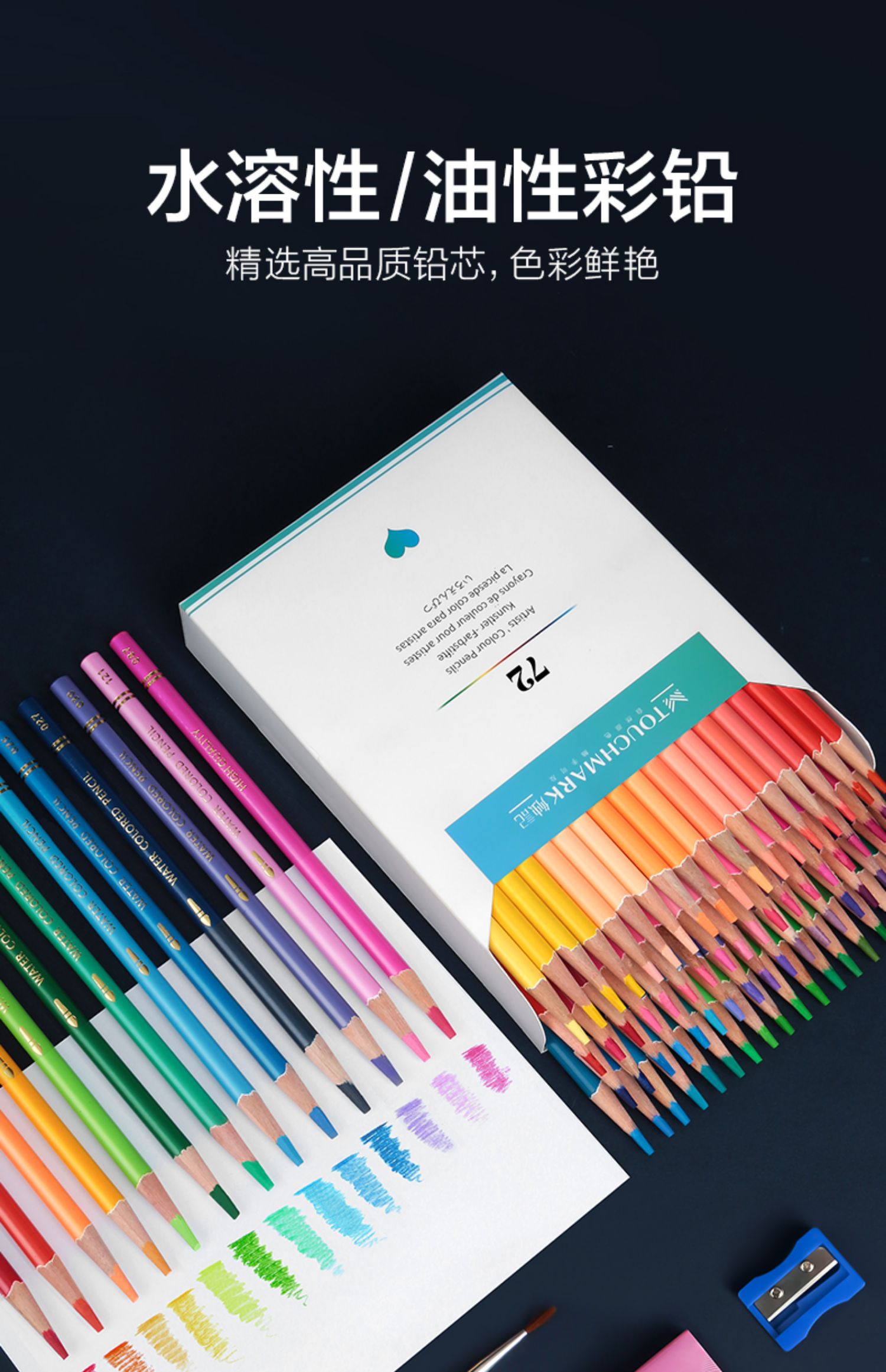 touchmark彩铅48色水溶性彩色铅笔套装美术学生专用专业120色手绘涂色笔油性72色画画笔儿童绘画美术用品