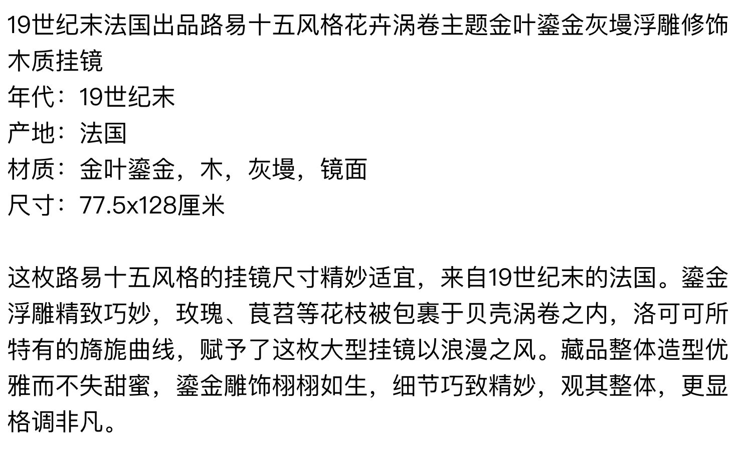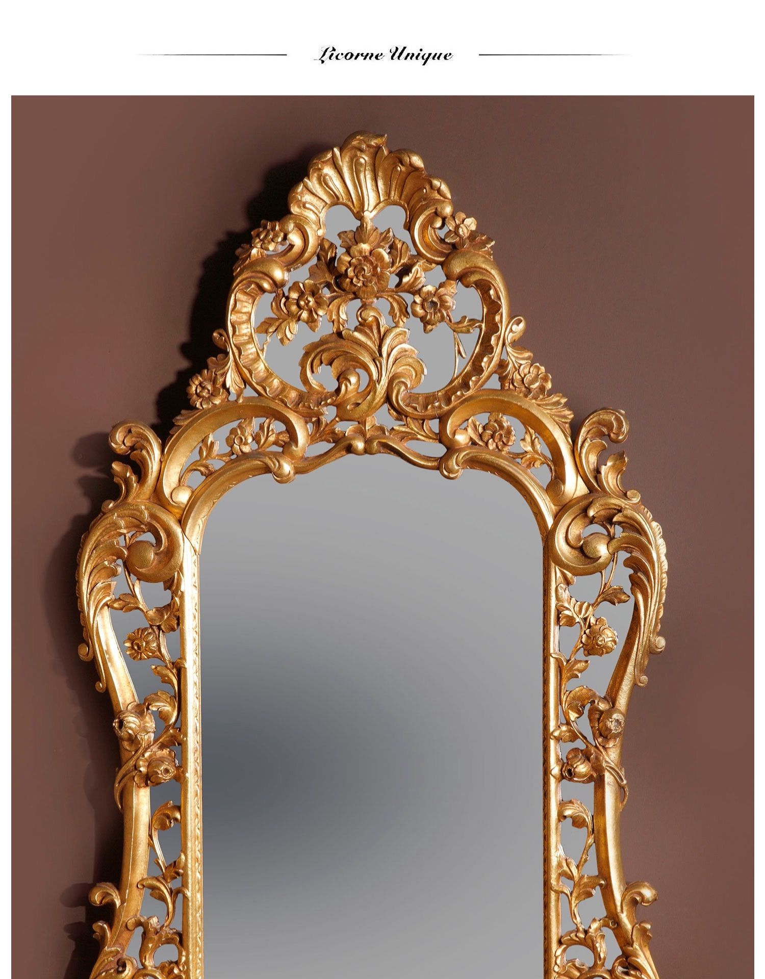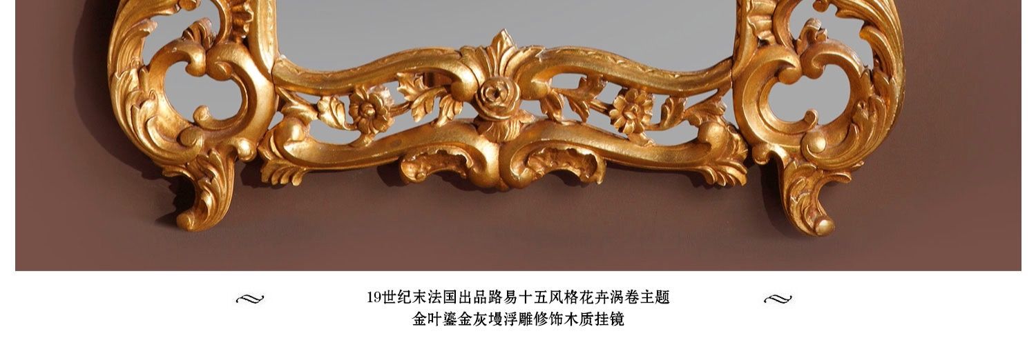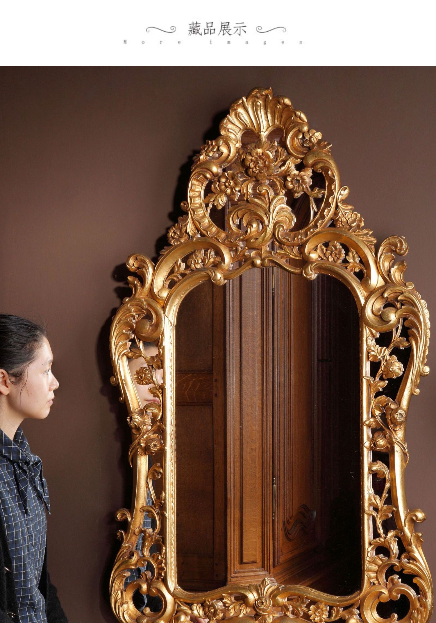 独角鹿西洋古董路易十五风格花卉涡卷金叶鎏金灰墁浮雕木质挂镜