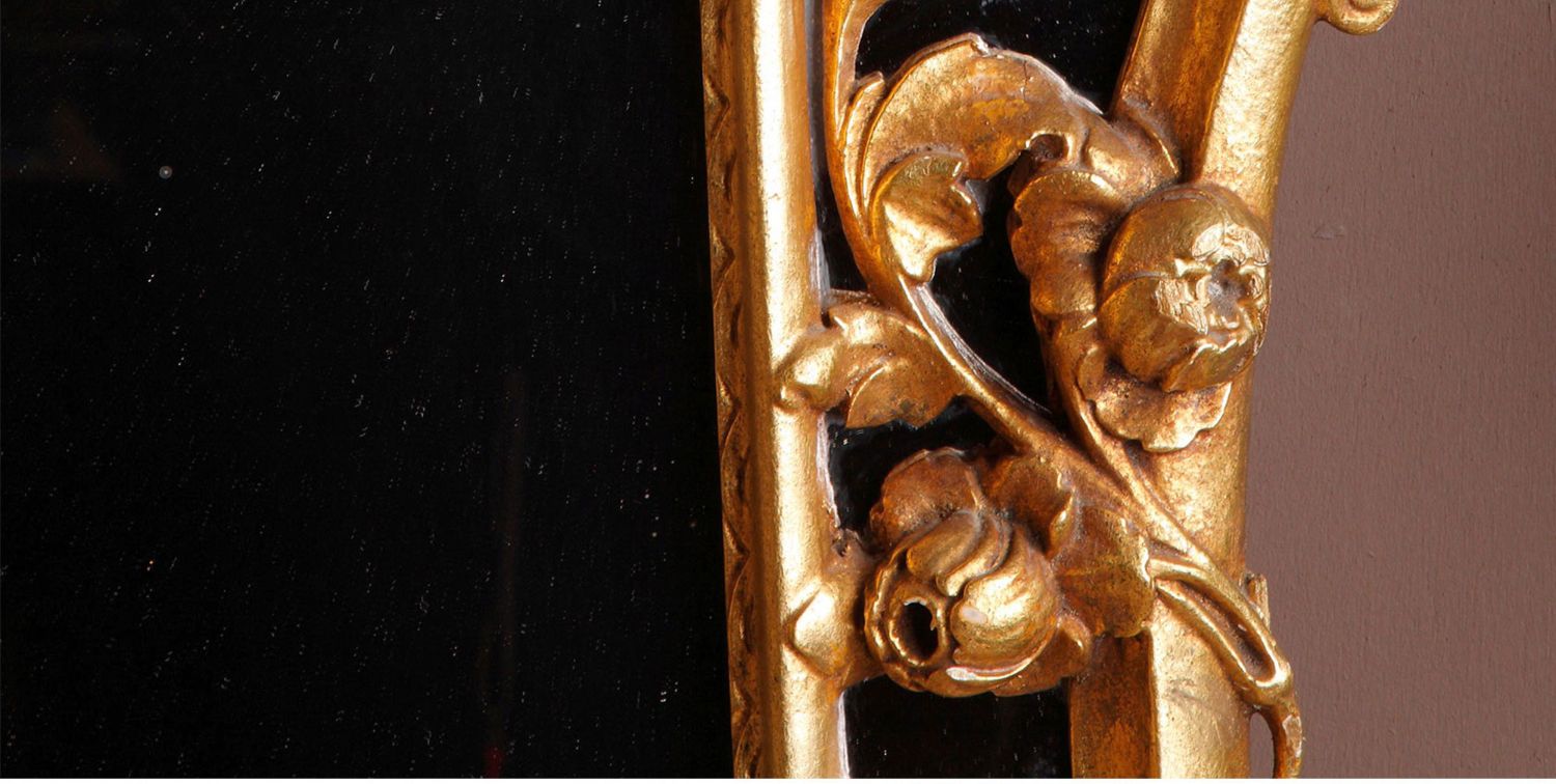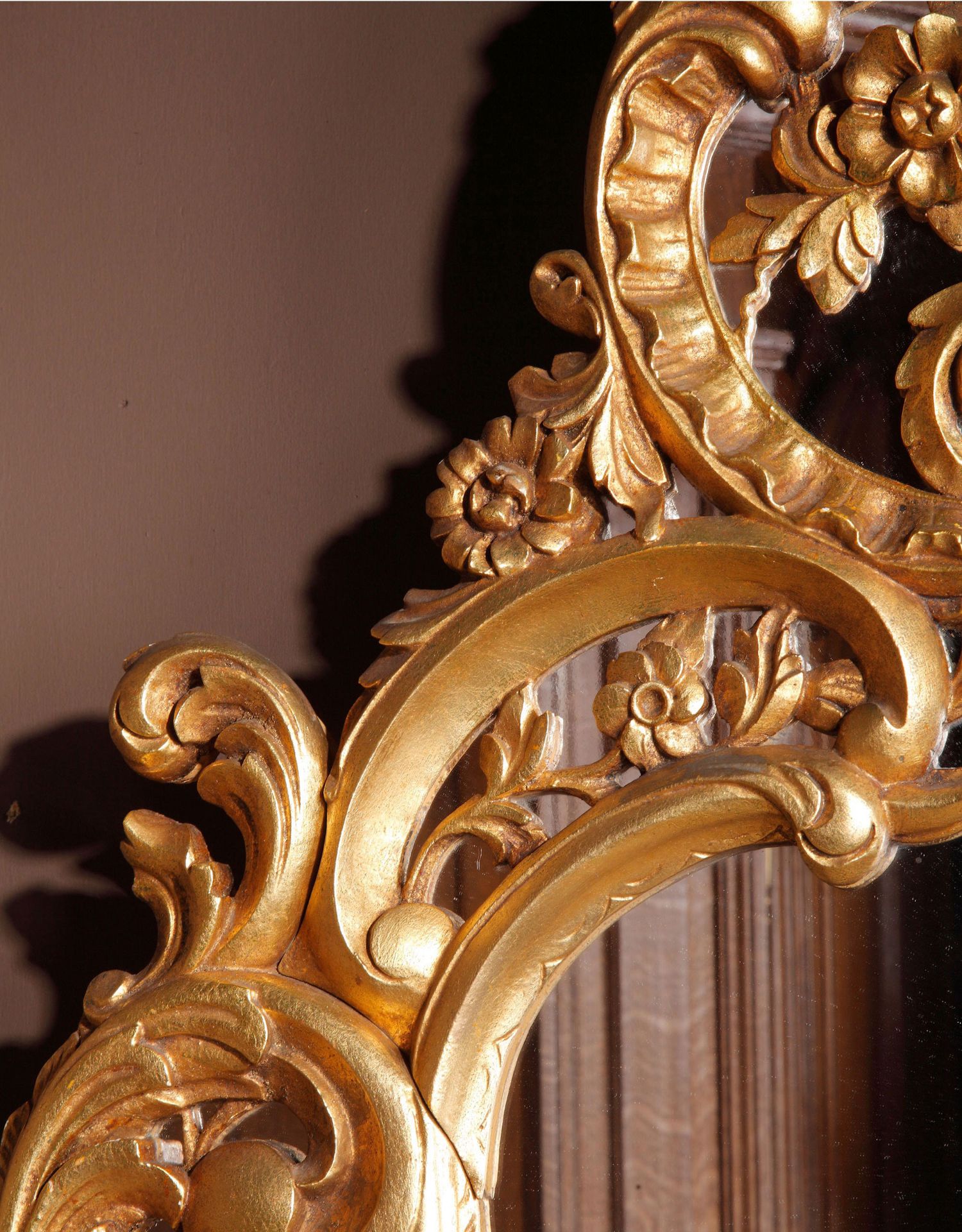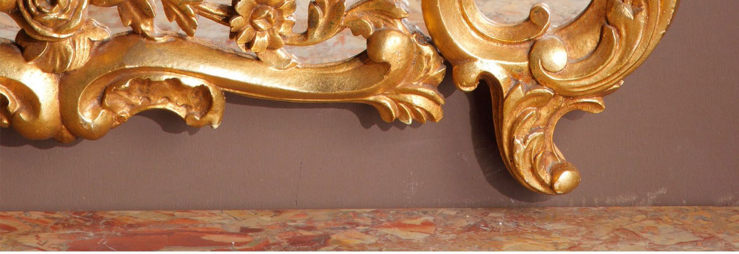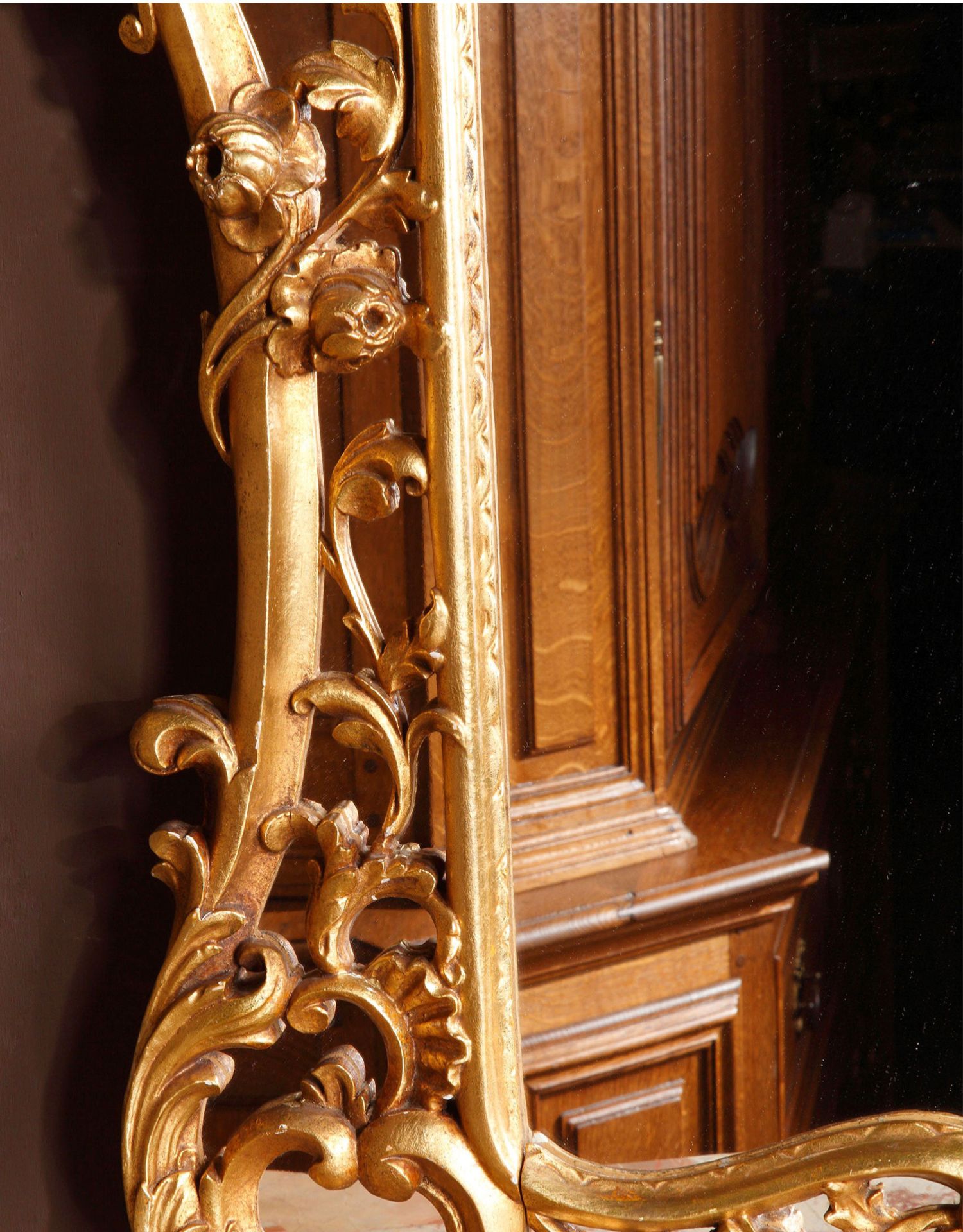 独角鹿西洋古董路易十五风格花卉涡卷金叶鎏金灰墁浮雕木质挂镜