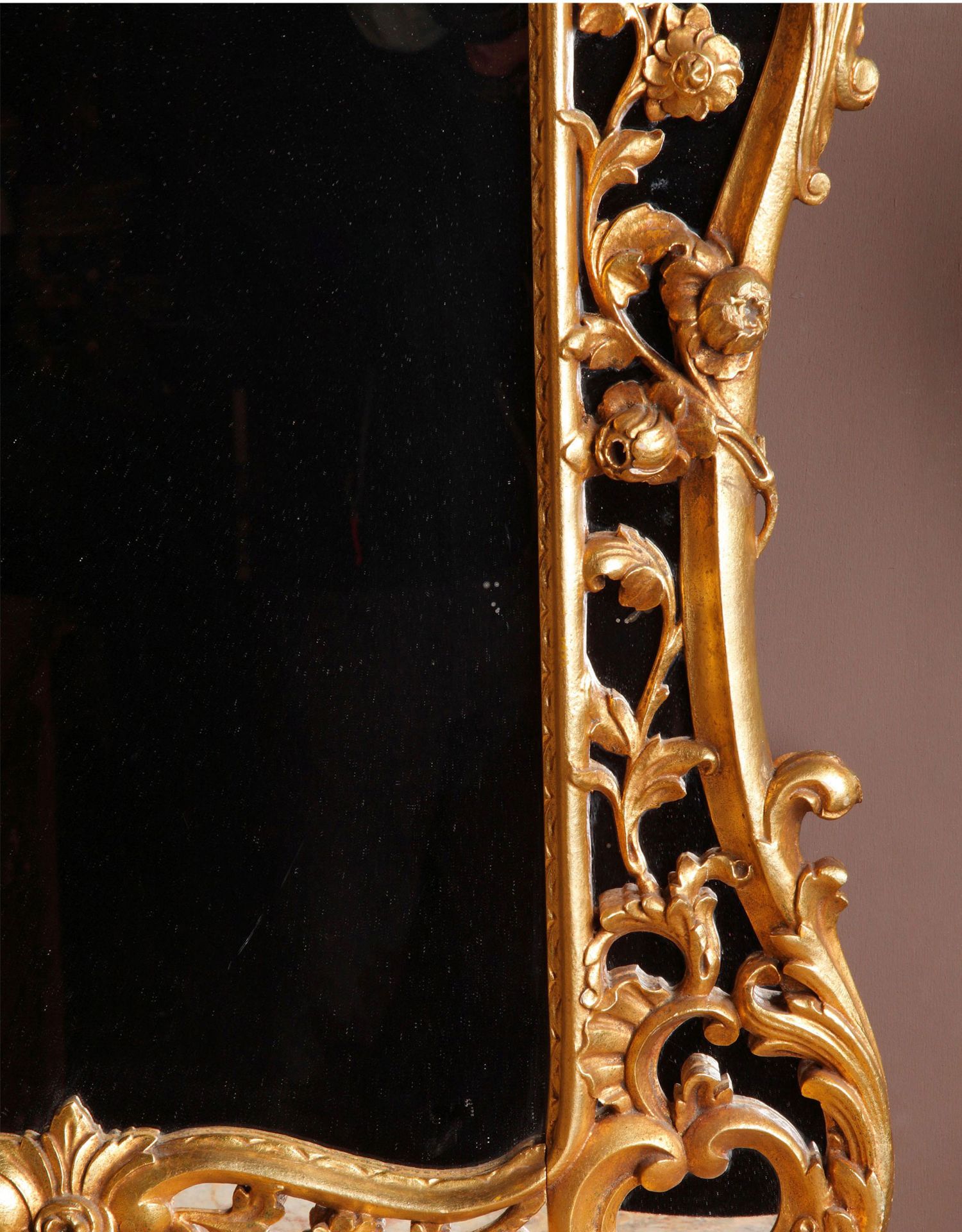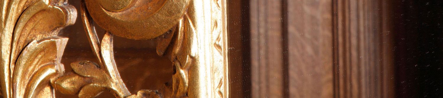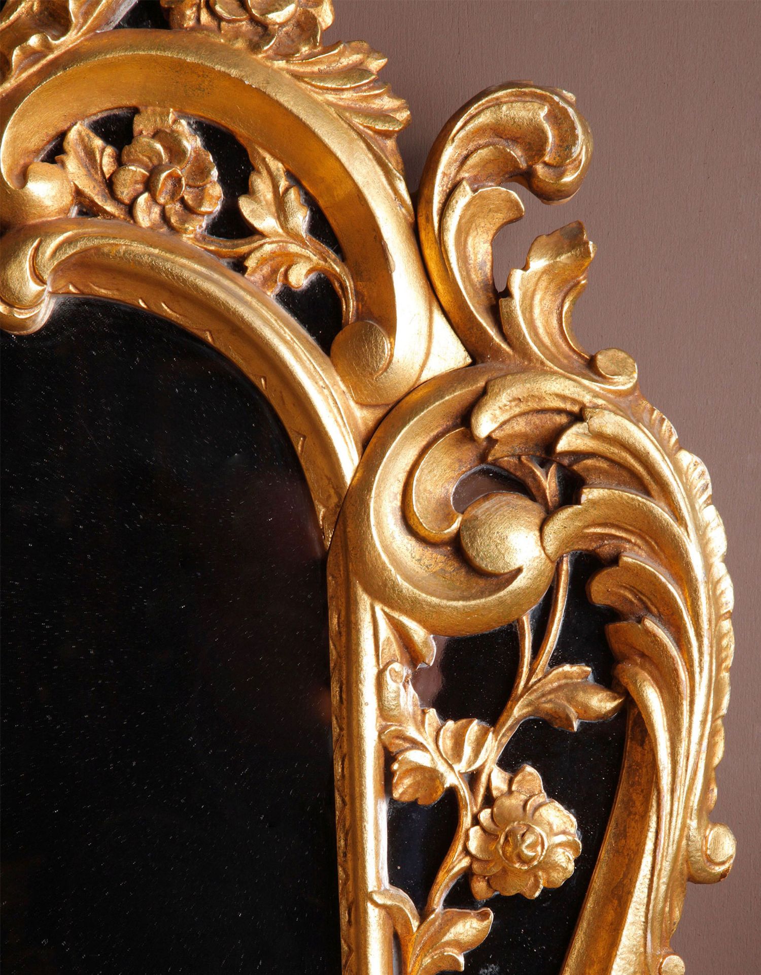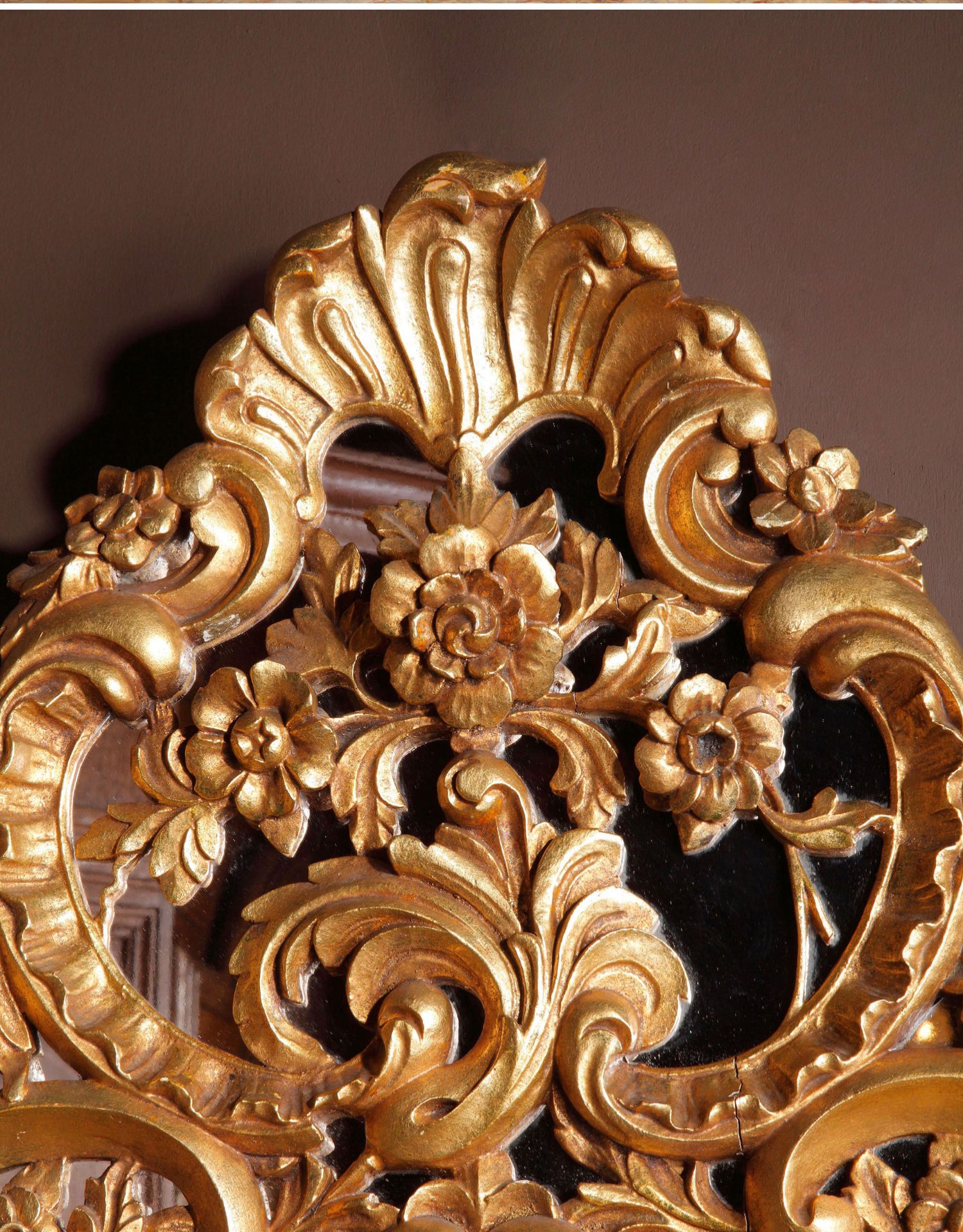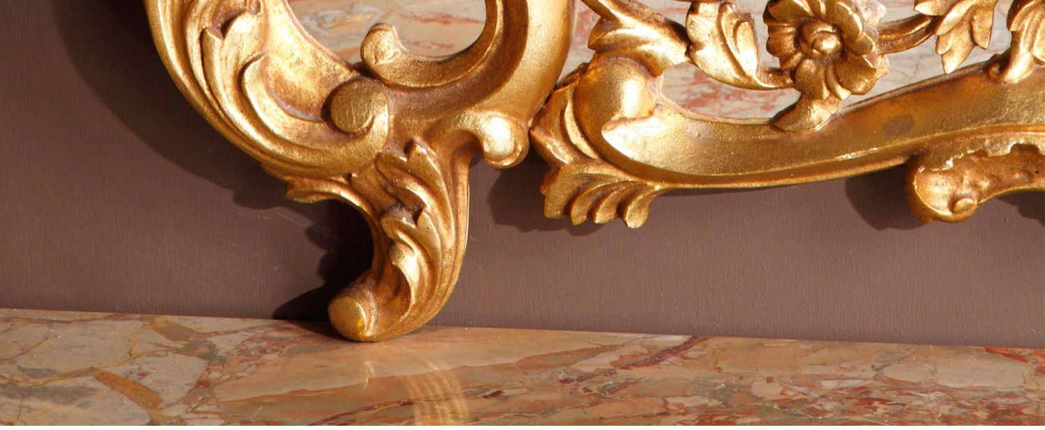 独角鹿西洋古董路易十五风格花卉涡卷金叶鎏金灰墁浮雕木质挂镜