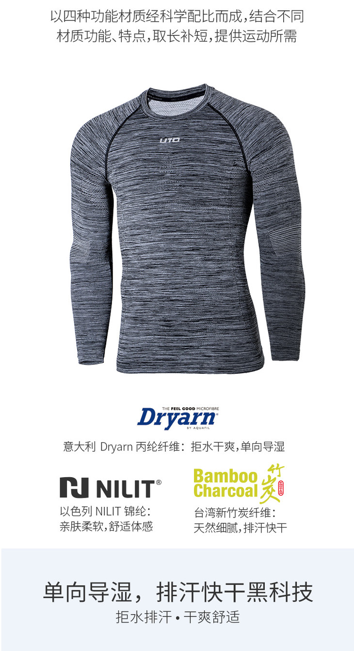 【珠峰实测!】UTO悠途丙纶单导不染色速干排汗功能内衣套装(男女款)