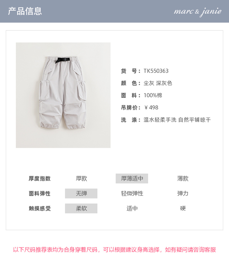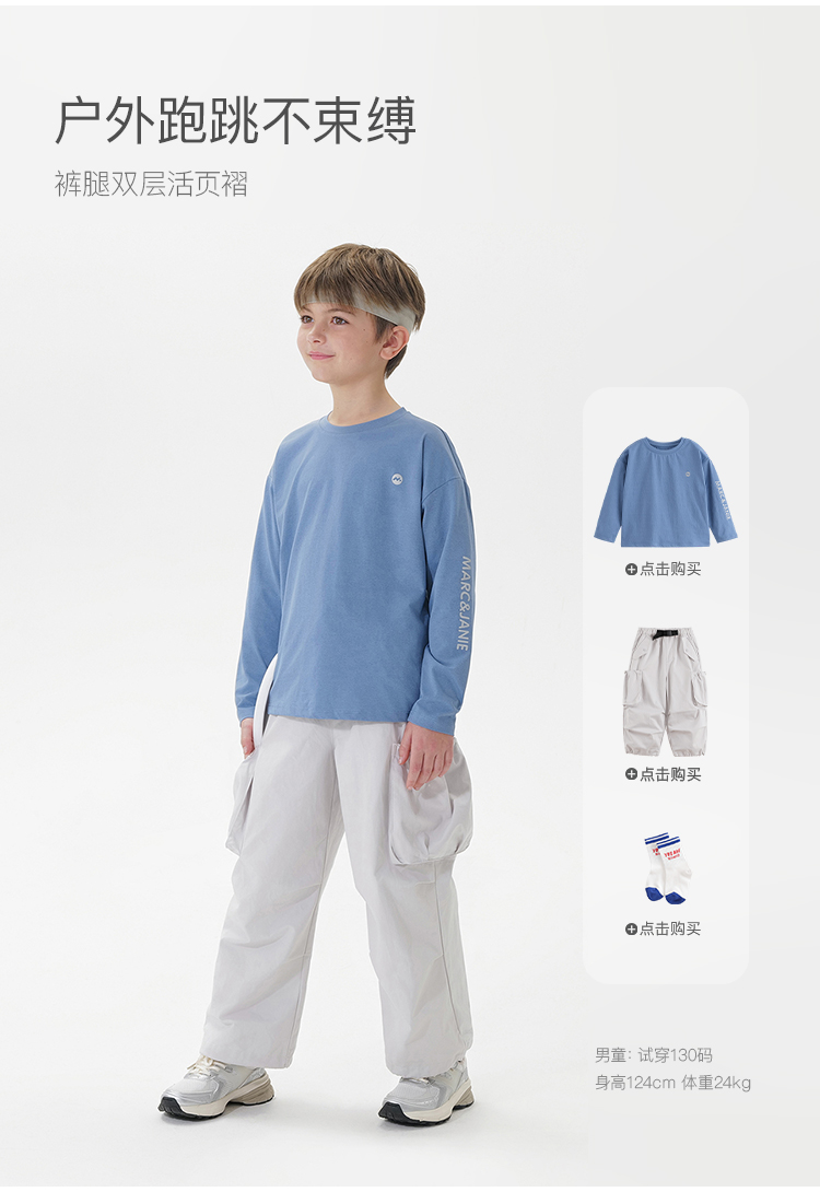 马克珍妮男童城市户外轻氧工装裤 儿童裤子2025年春季新款550363