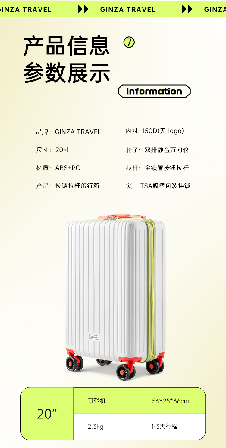 银座GINZA TRAVEL 20寸轻便登机拉链箱6635L