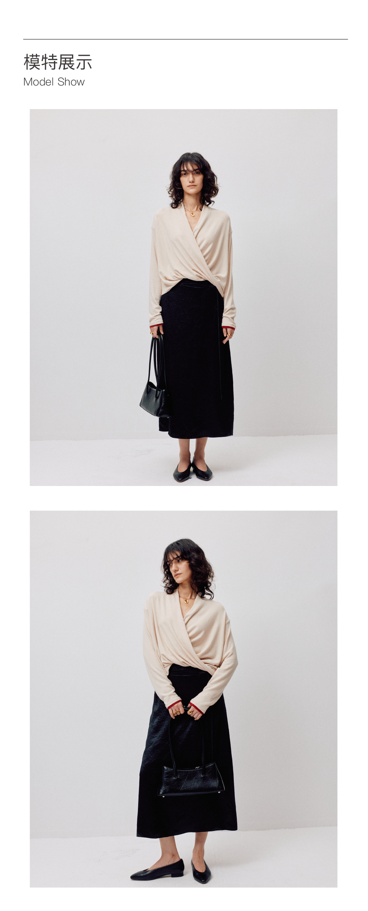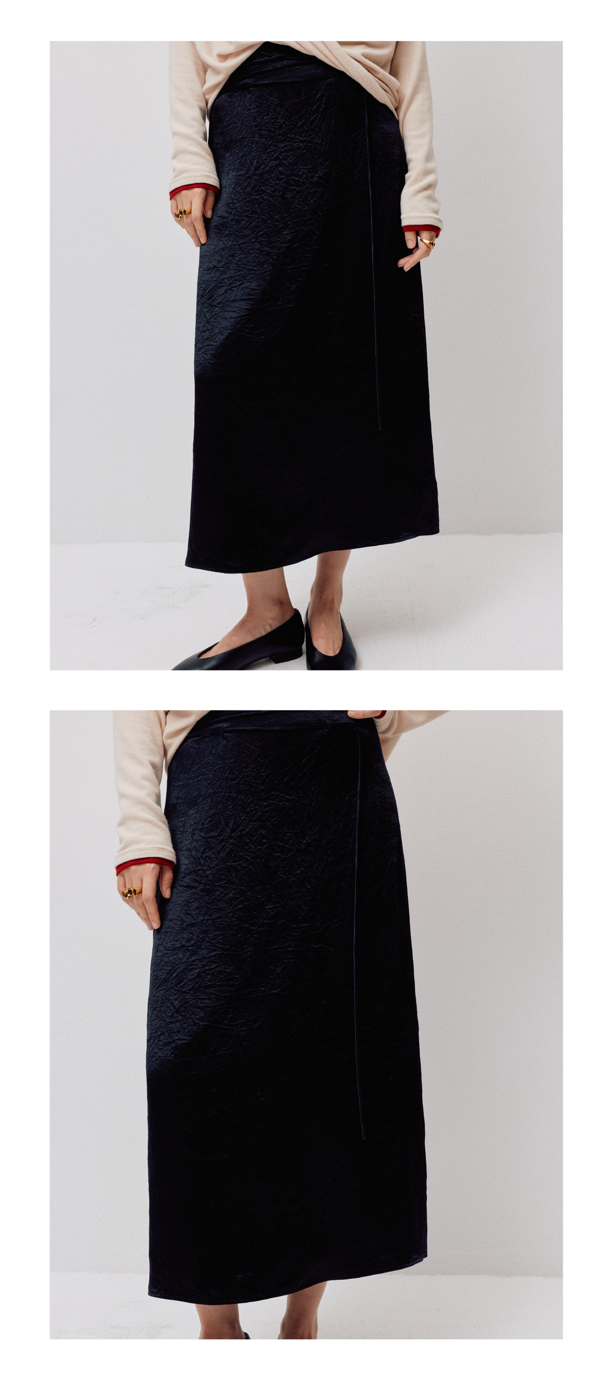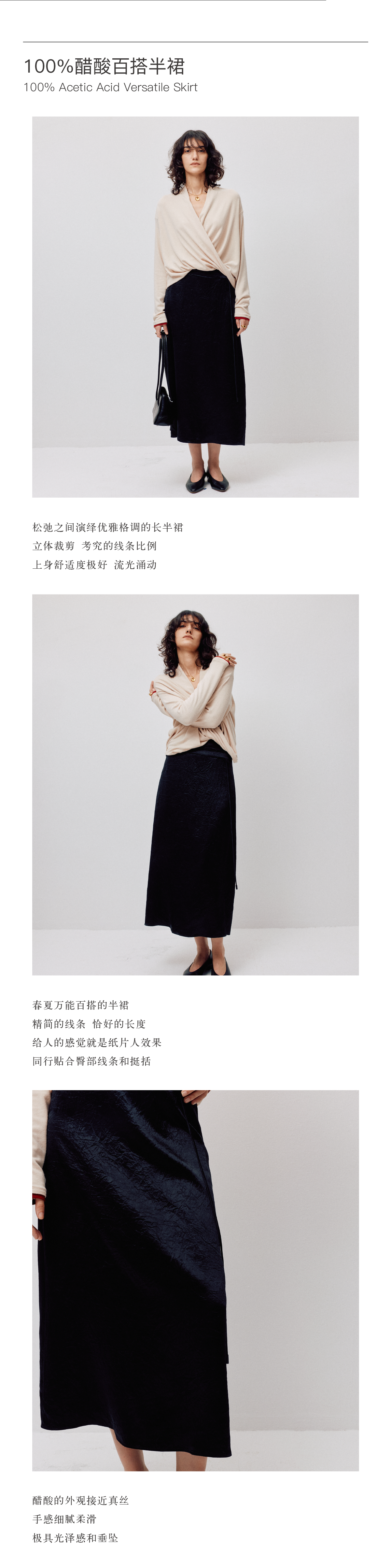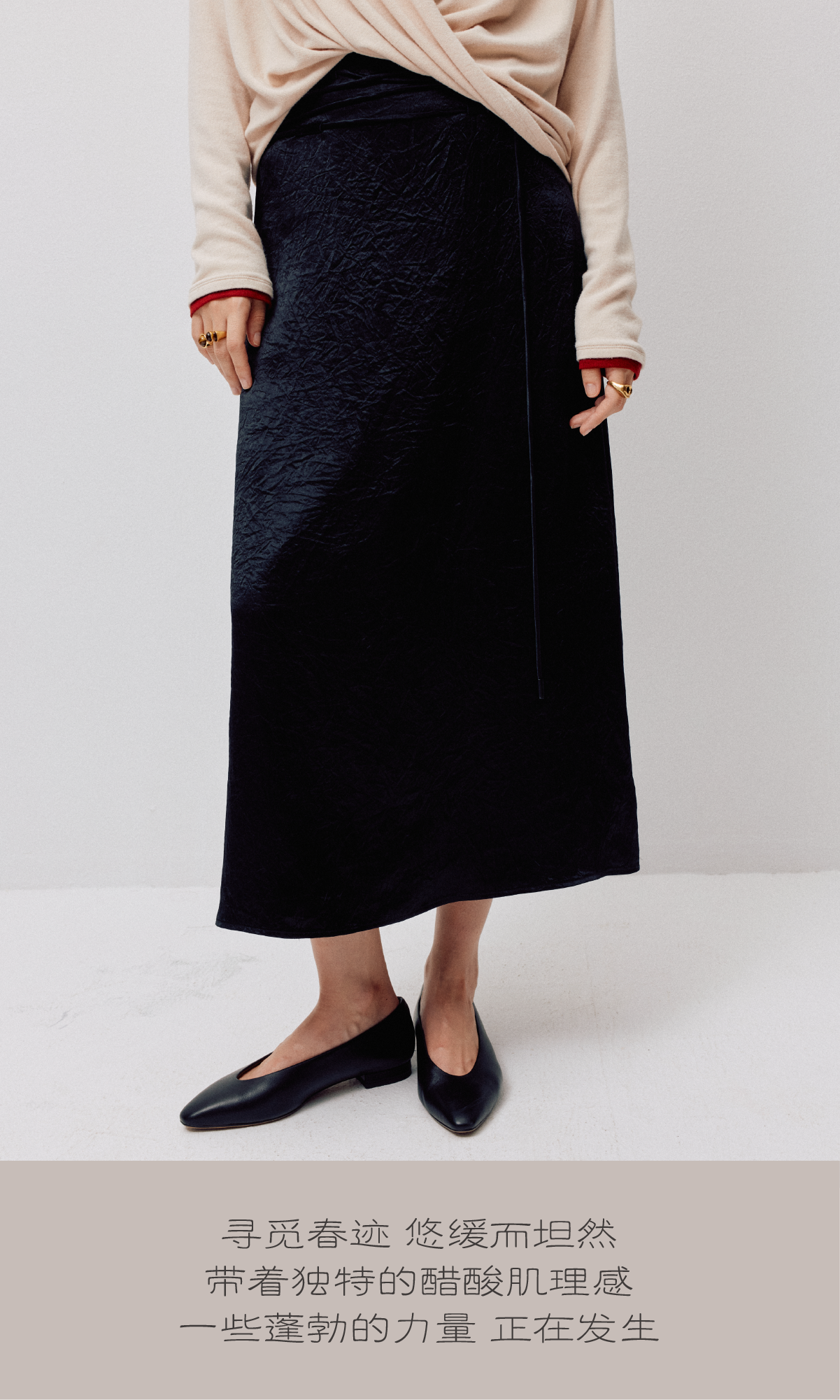 LIYIHAN织梦丨25春醋酸压褶肌理感半身裙女A摆黑色法式中长款长裙