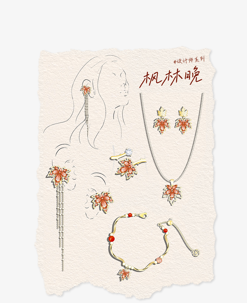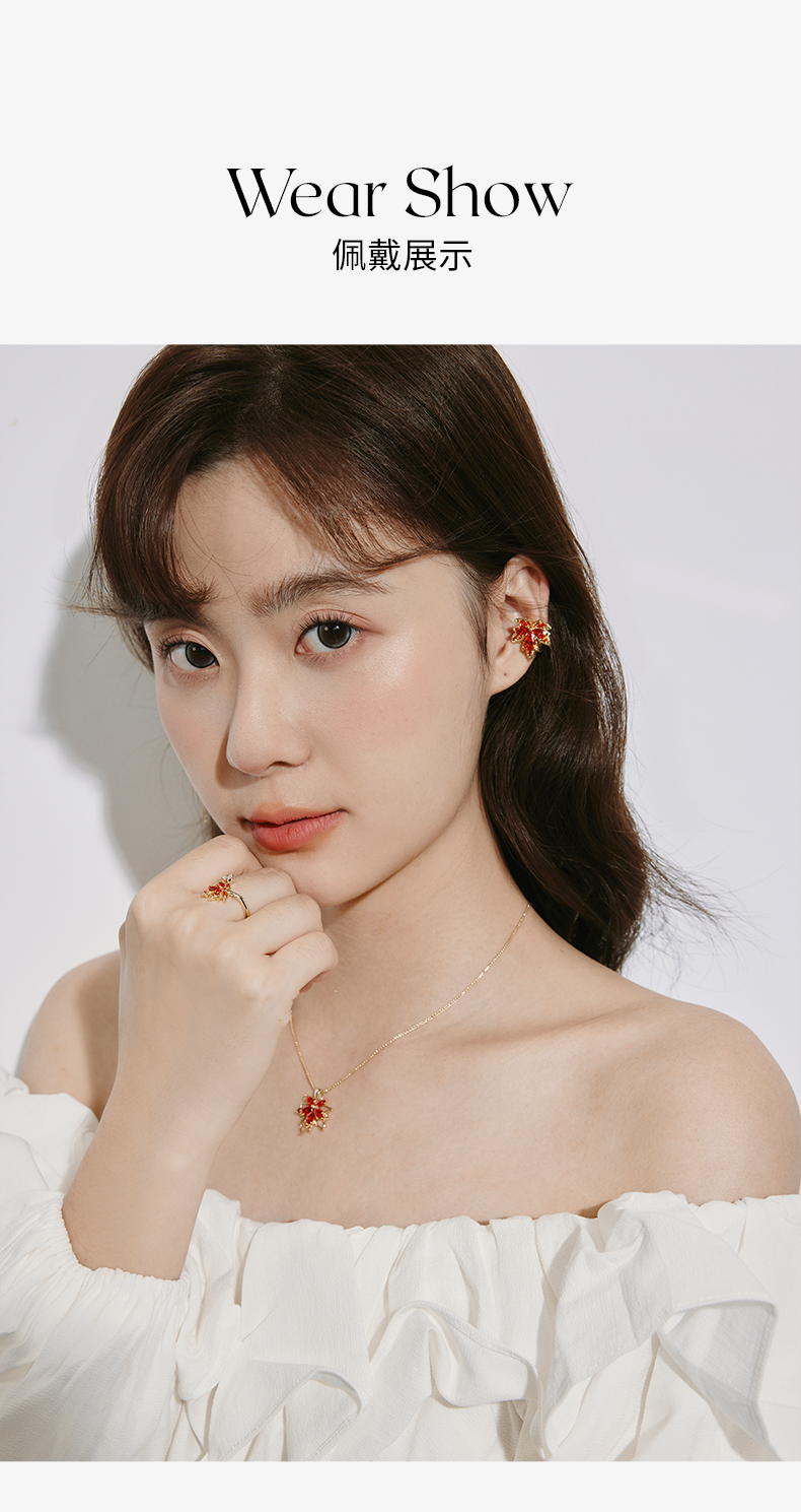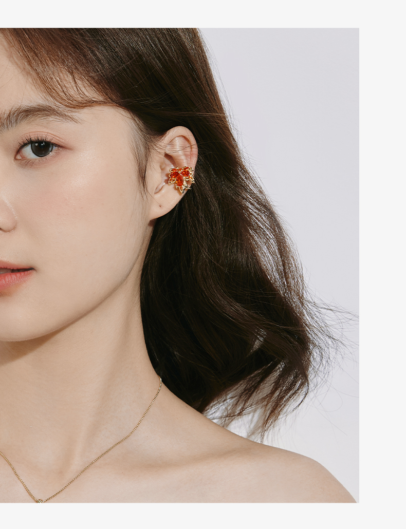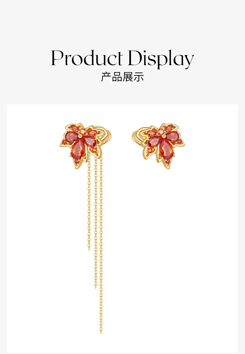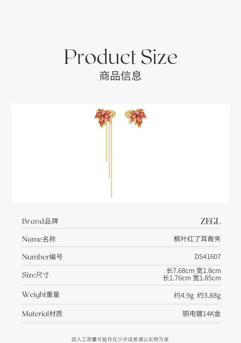 ZEGL设计师枫林晚系列枫叶流苏耳夹女无耳洞耳骨夹长款不对称耳饰