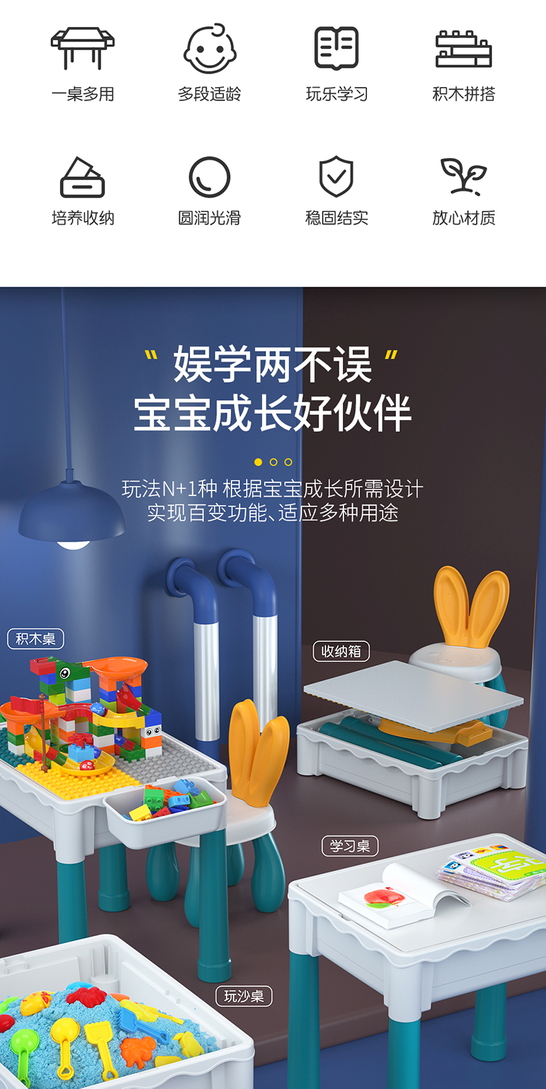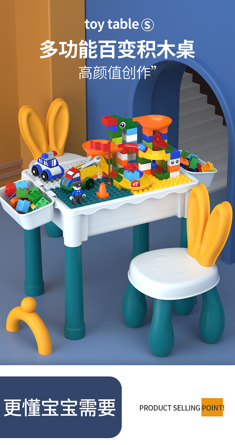 Z216 儿童积木桌+1椅(1兔椅+4桶积木+150大颗粒+60滑道)