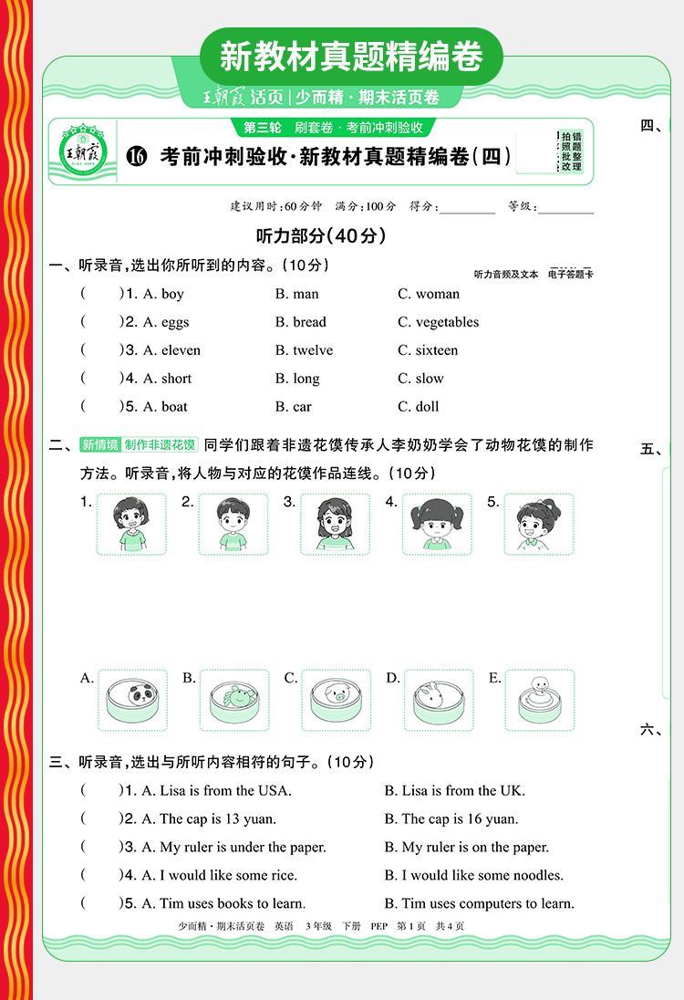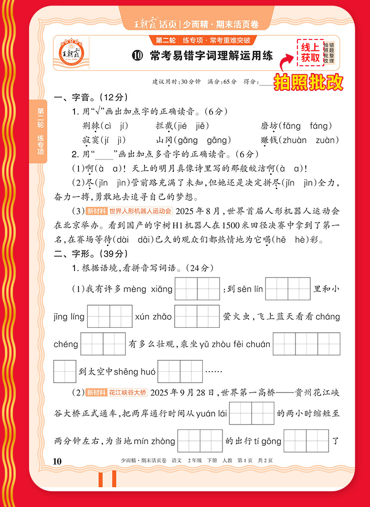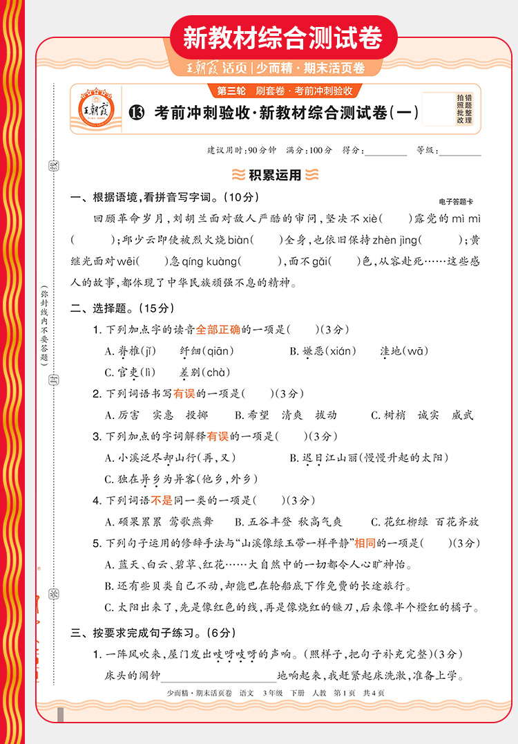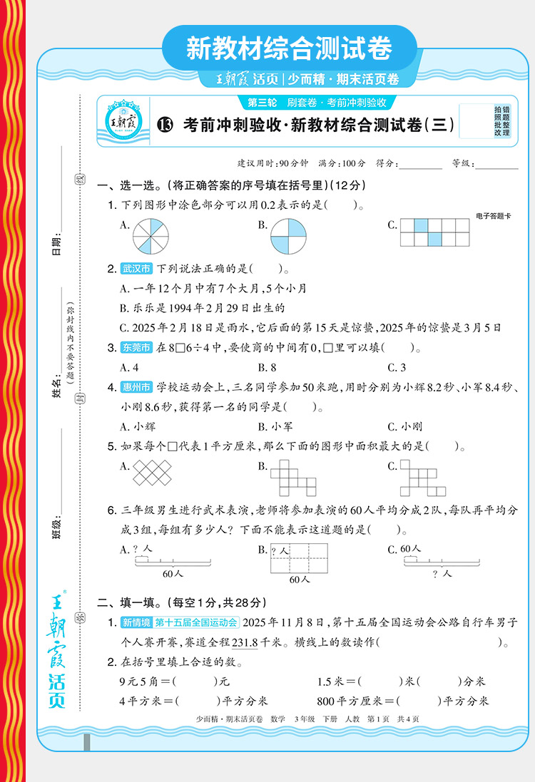 2026春王朝霞期末活页卷1-6年级(下册) 语/数/英可选