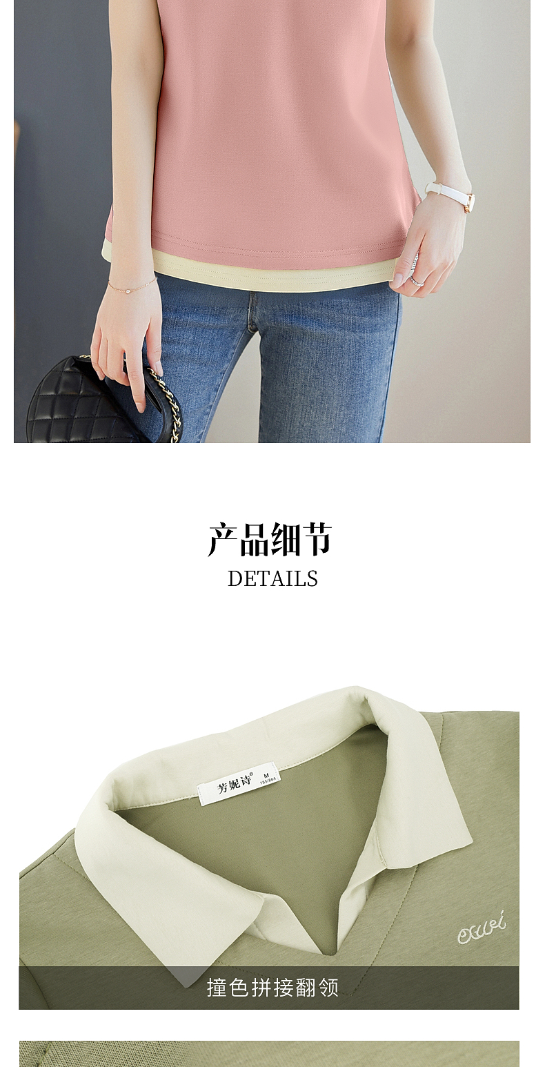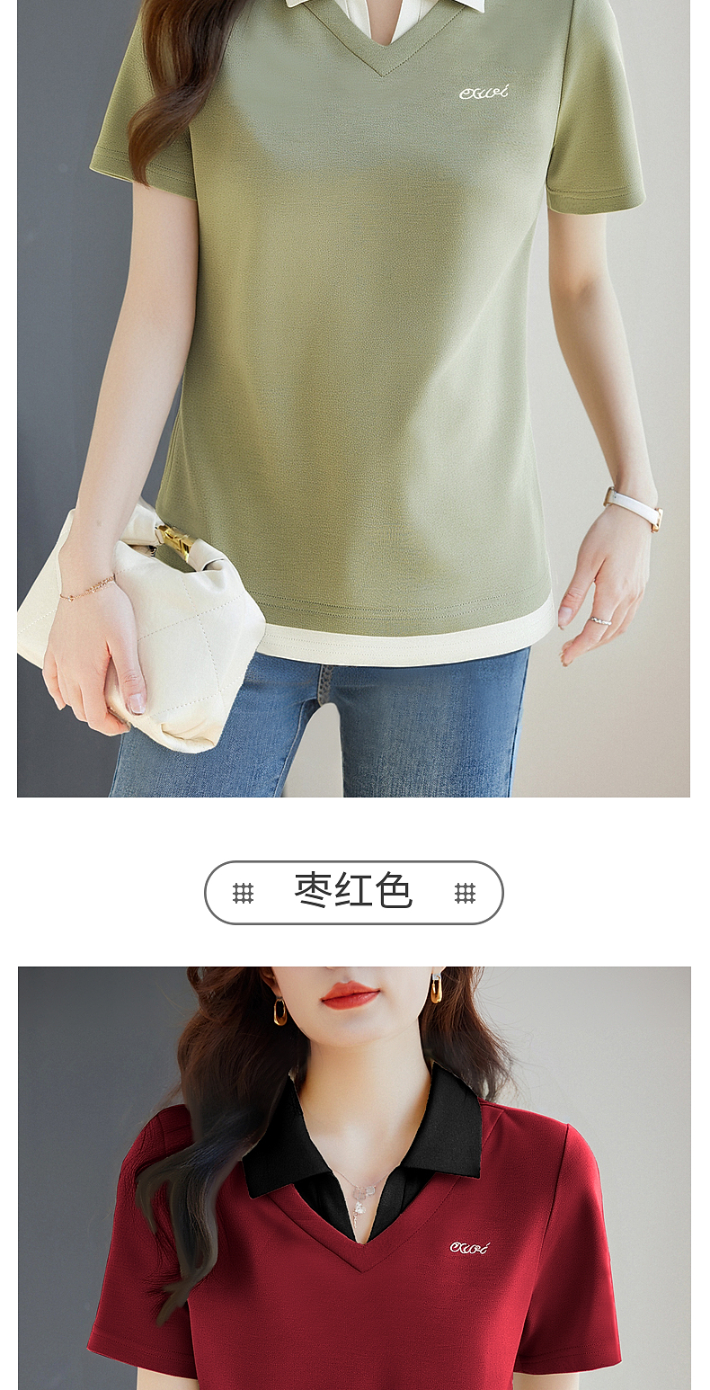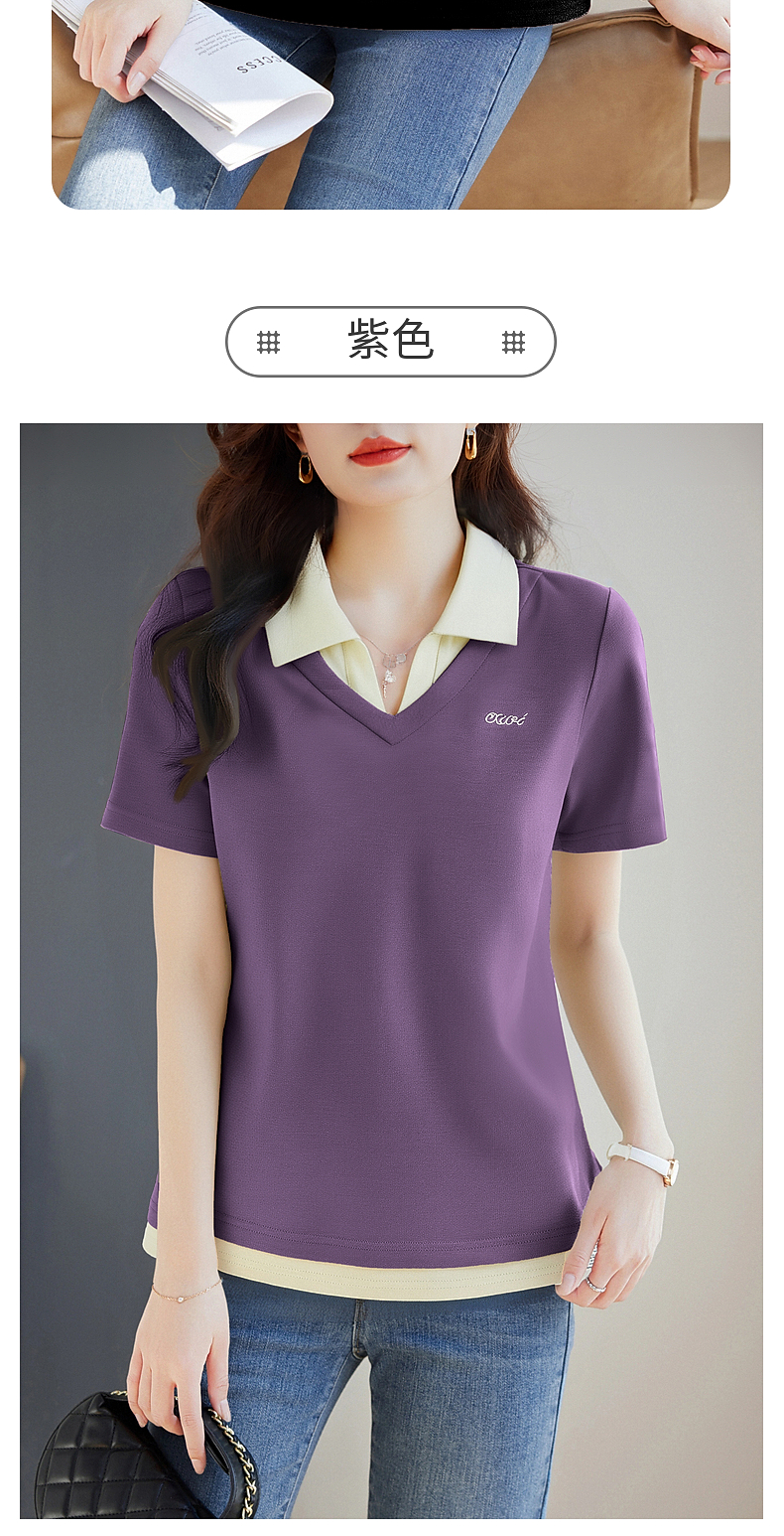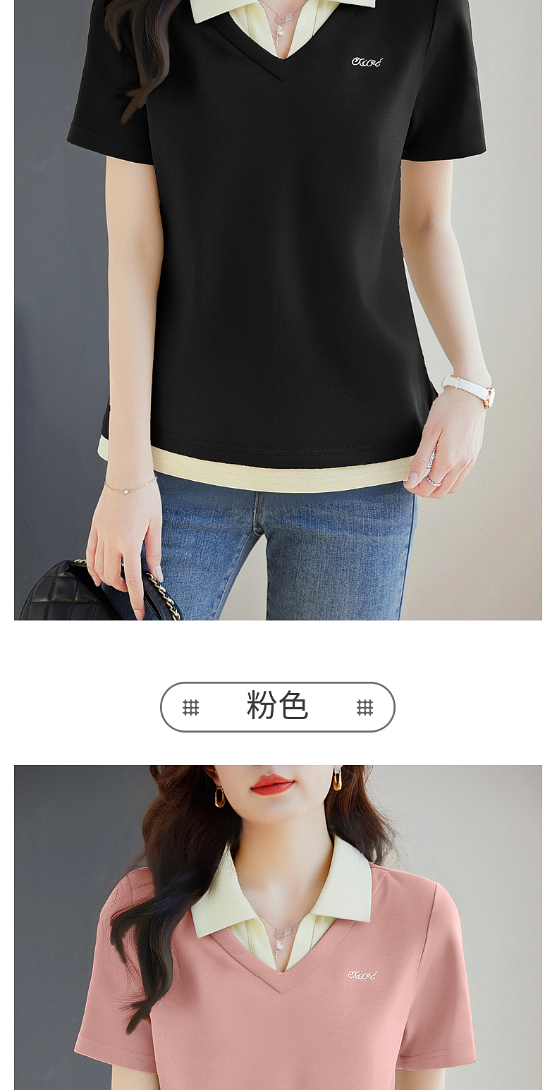 翻领短袖t恤女2026年新款夏季大码女士假两件上衣宽松女装polo衫