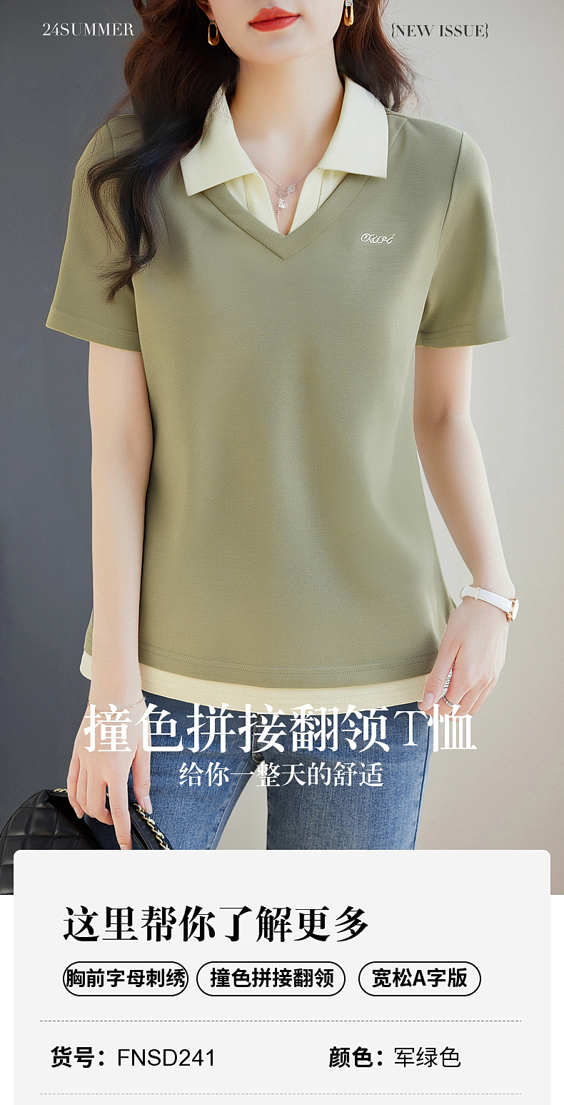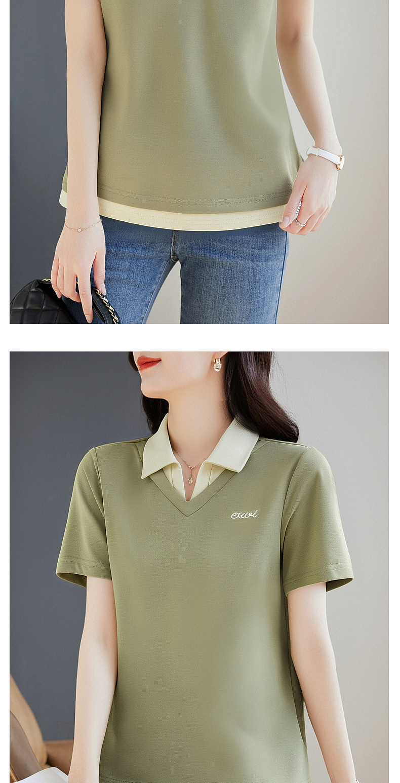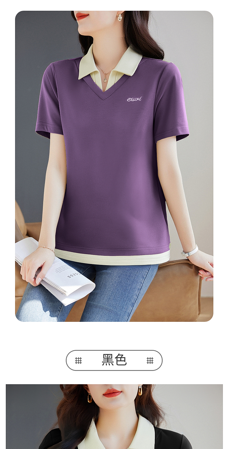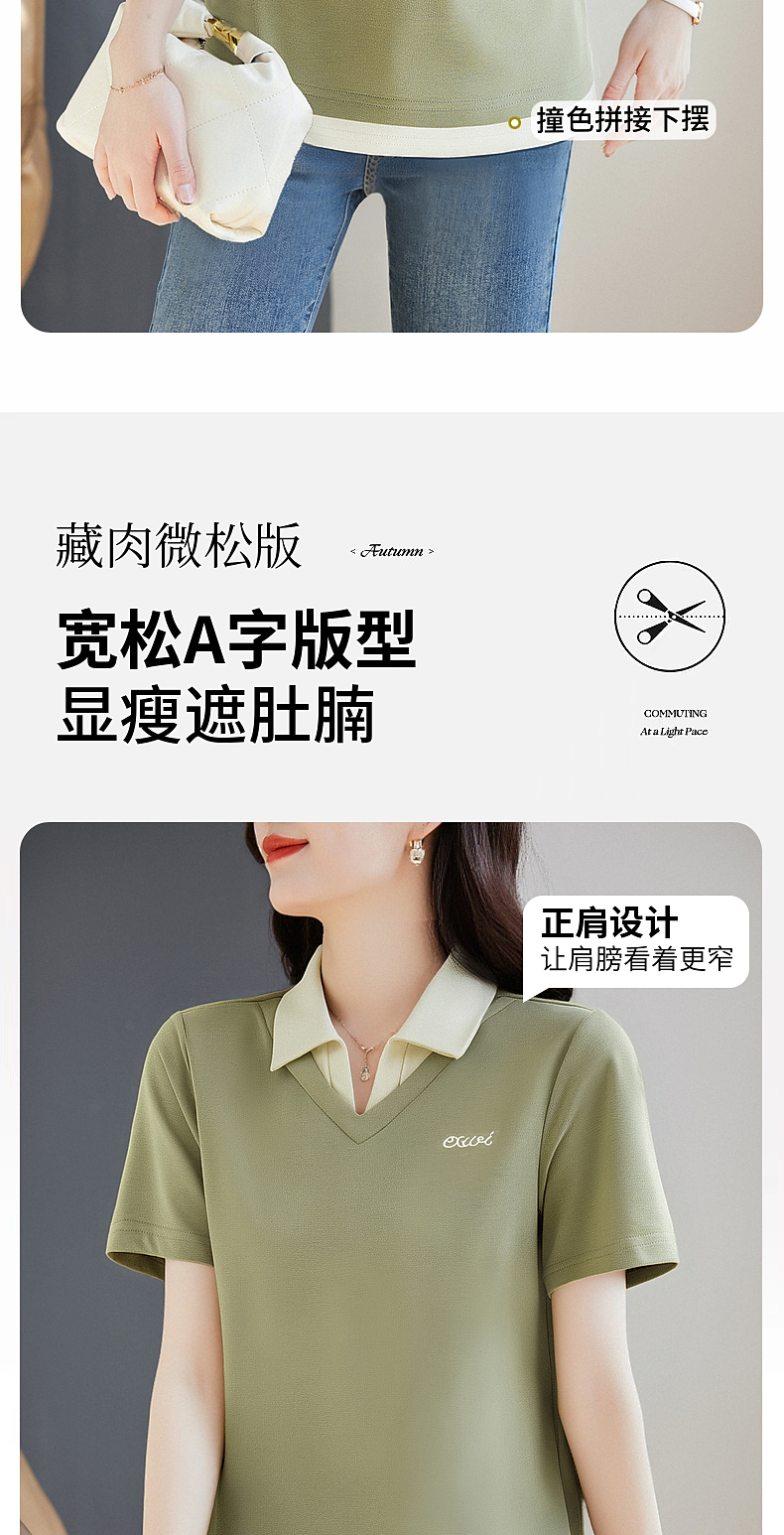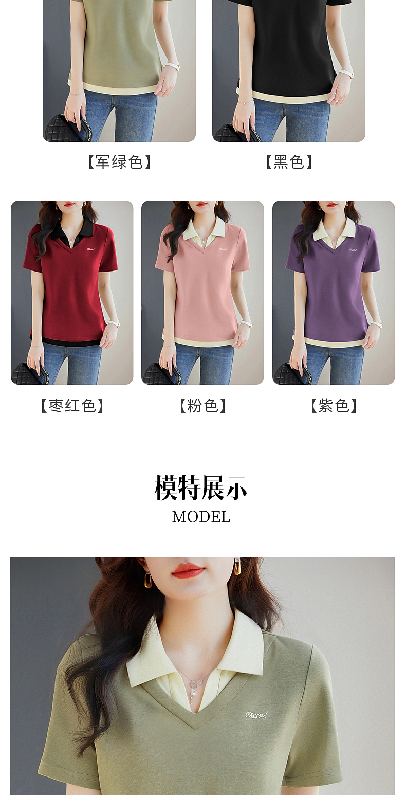 翻领短袖t恤女2026年新款夏季大码女士假两件上衣宽松女装polo衫