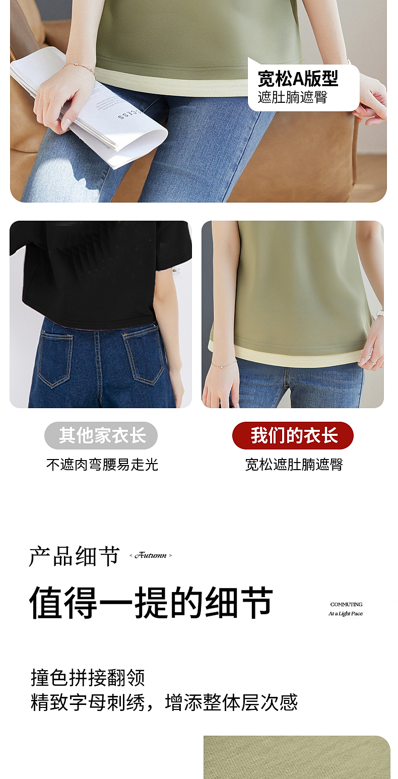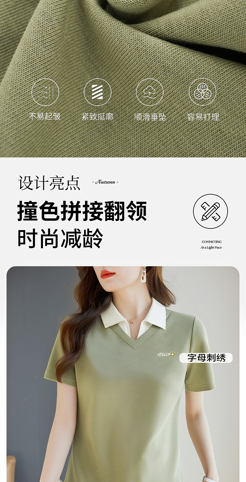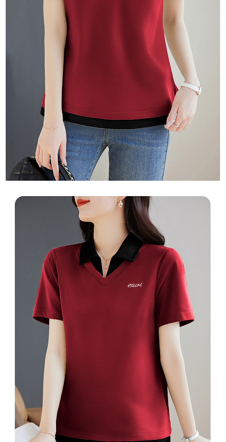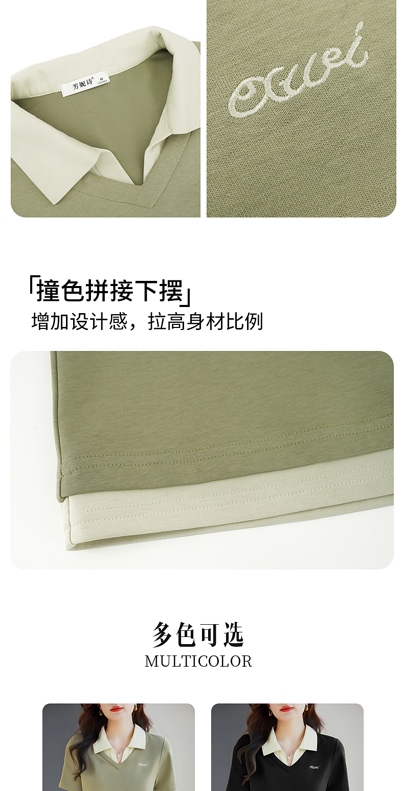 翻领短袖t恤女2026年新款夏季大码女士假两件上衣宽松女装polo衫