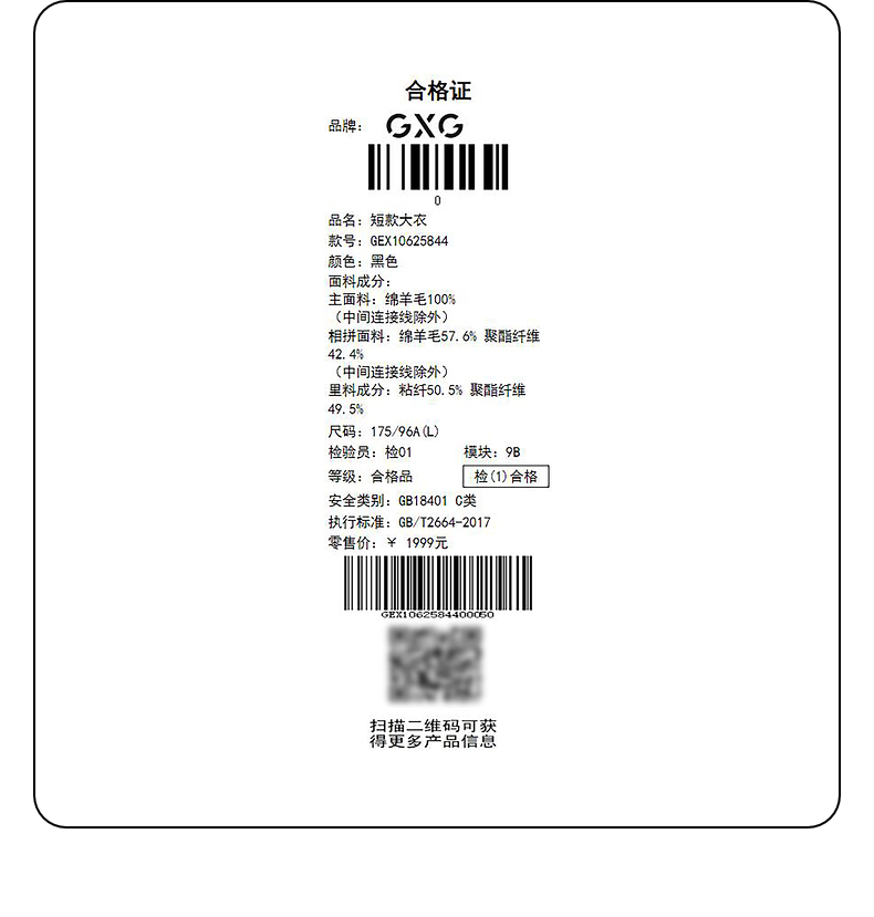 GXG男装 冬季热卖黑色羊毛精致短款大衣GEX10625844