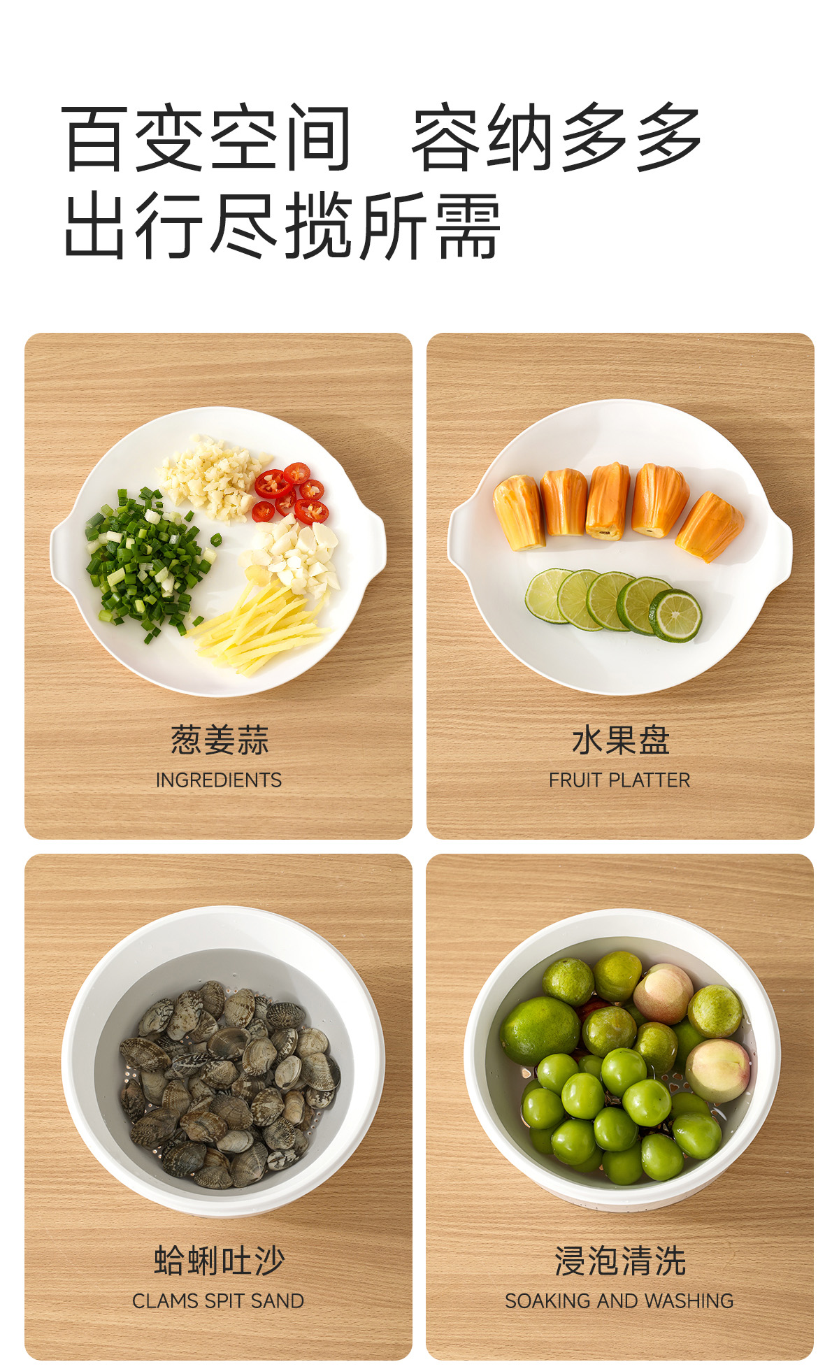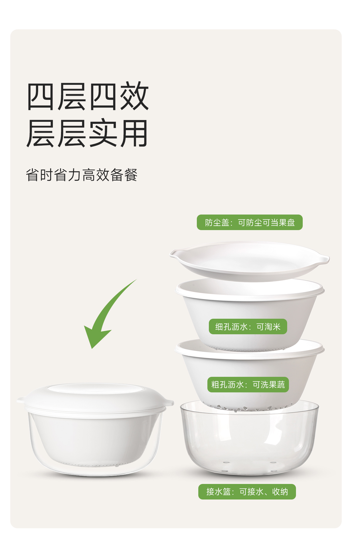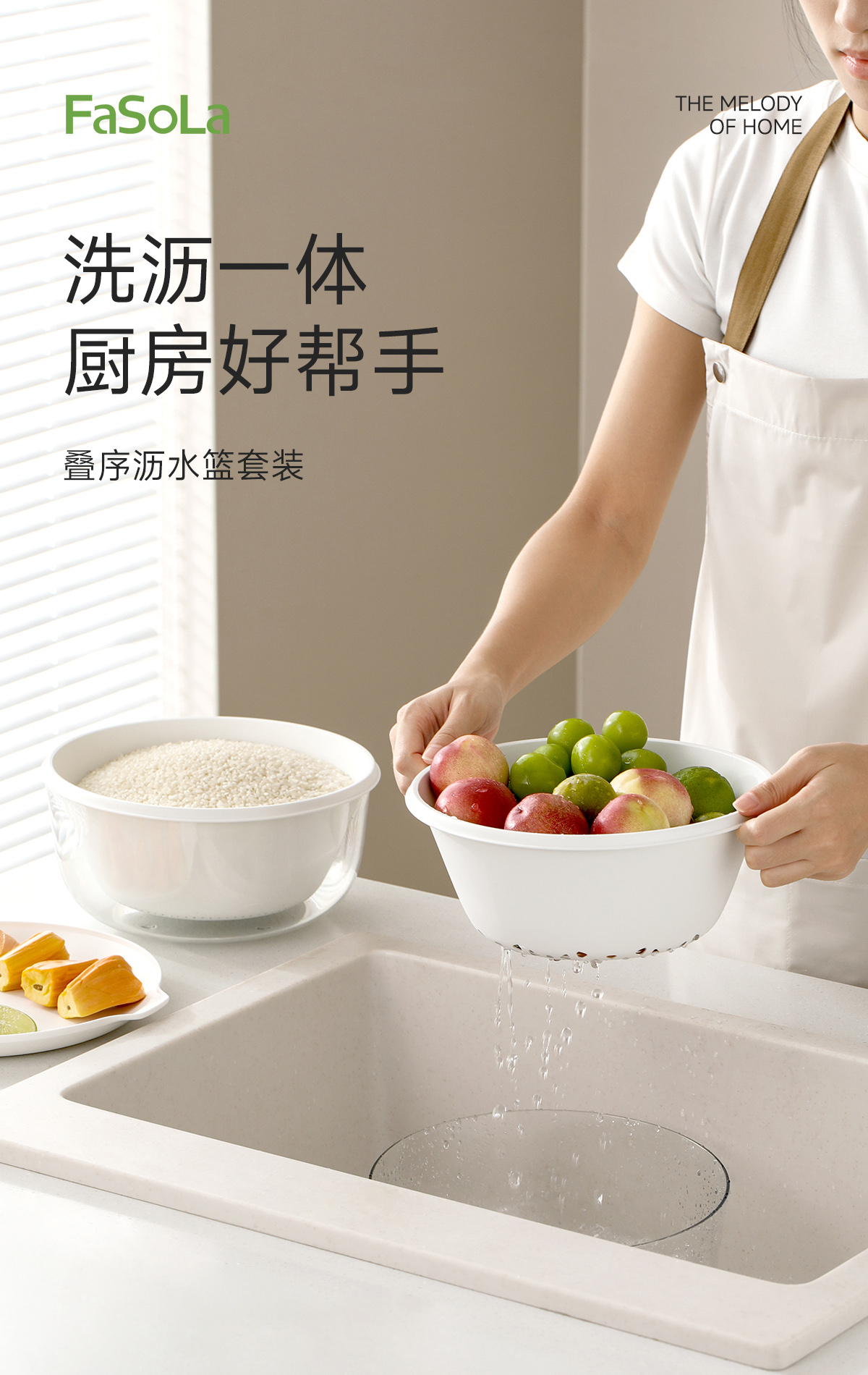 FaSoLa沥水篮四层多功能厨房家用淘洗菜蓝叠序沥水篮套装