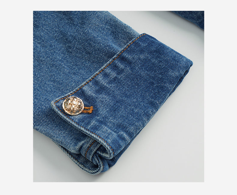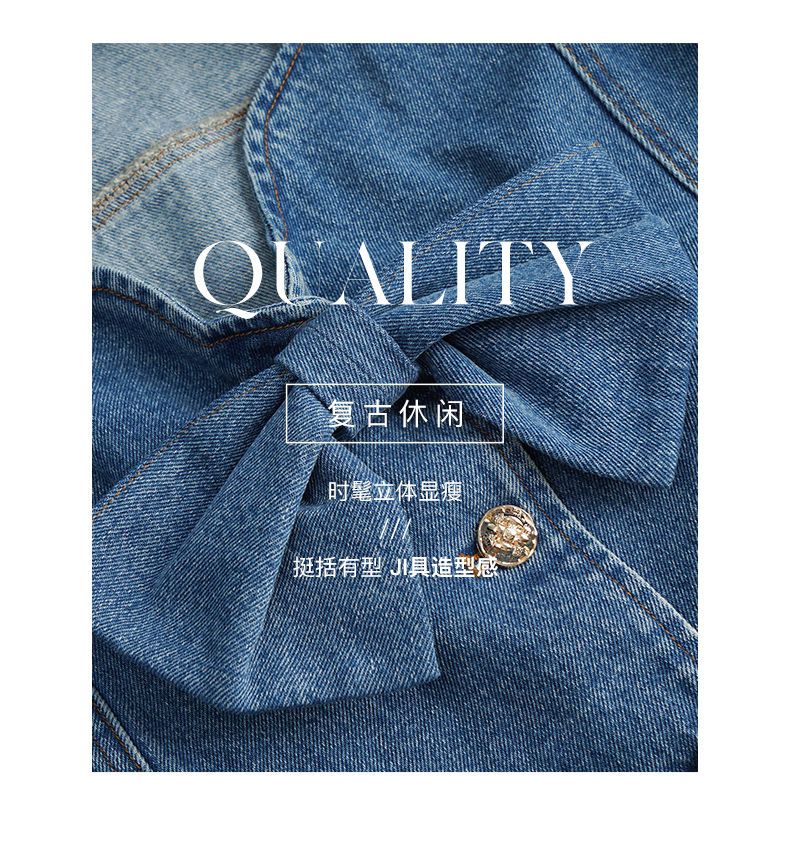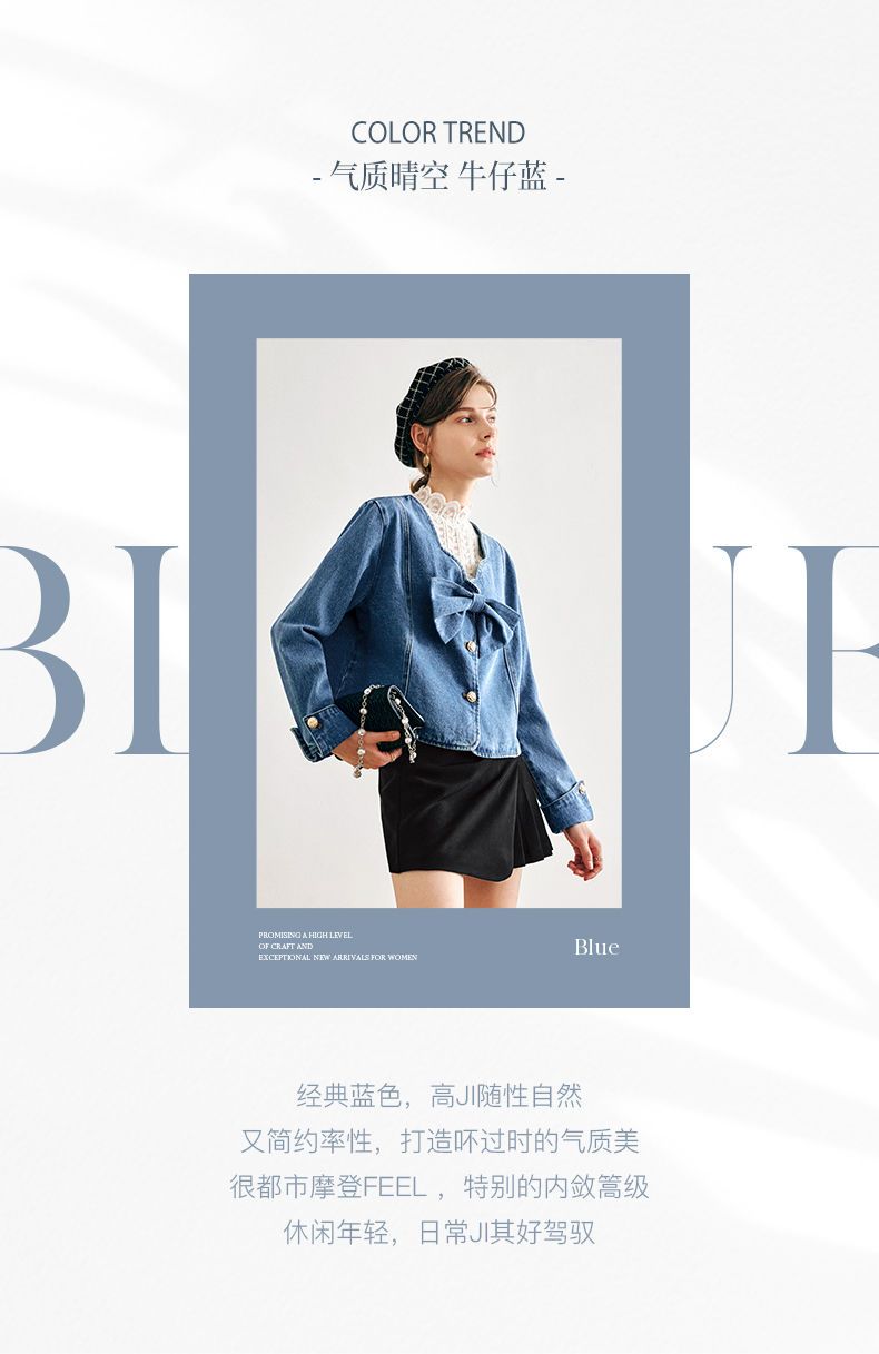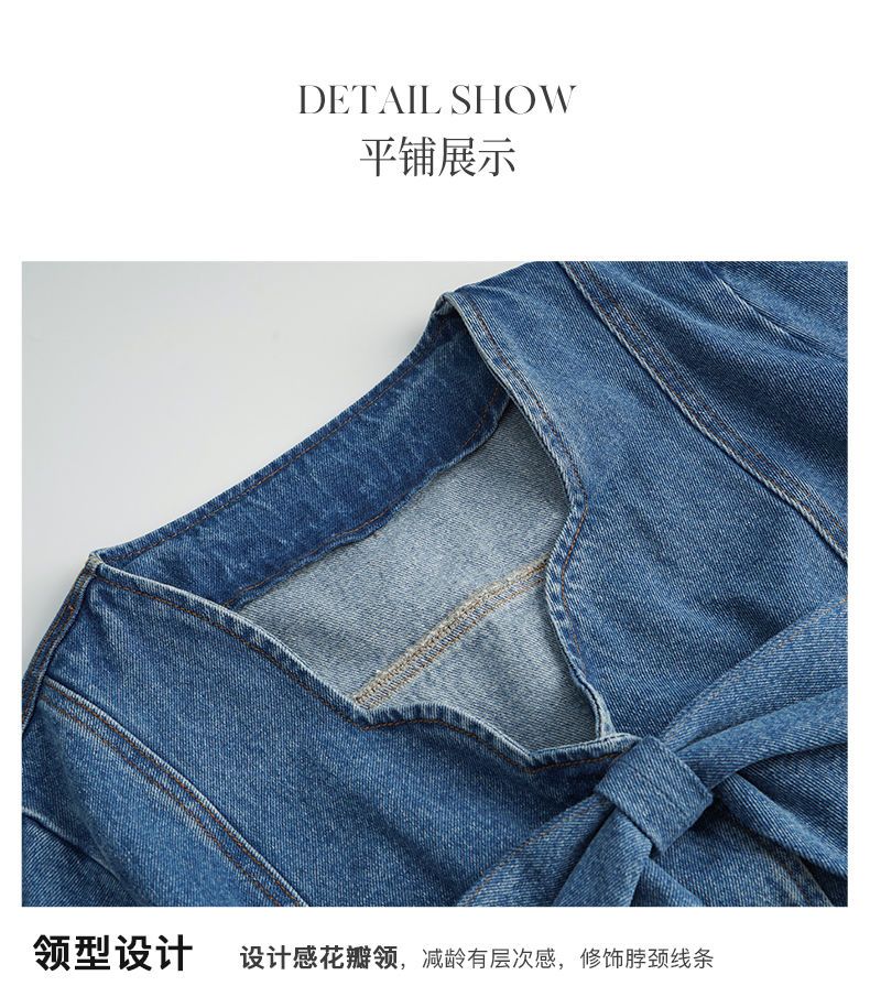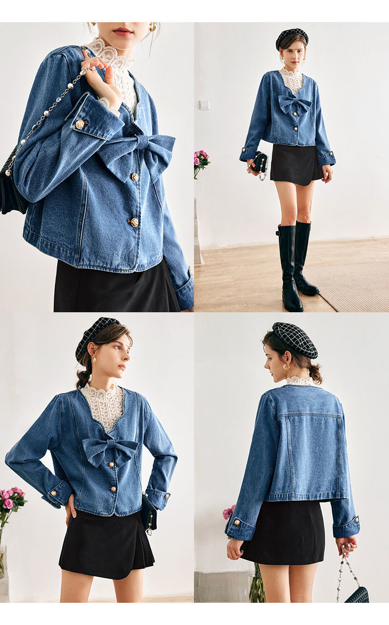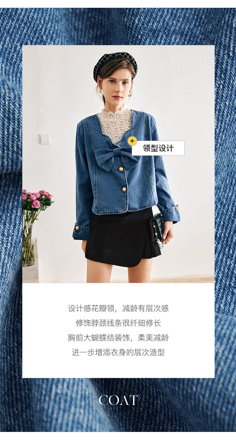 OLrain法式牛仔蓝短外套女早秋2022年新款设计感蝴蝶结花瓣领上衣