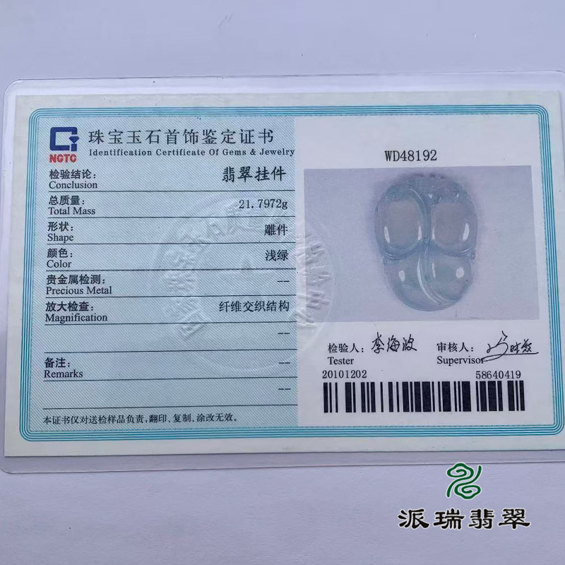 派瑞翡翠 翡翠挂件 冰种 无色