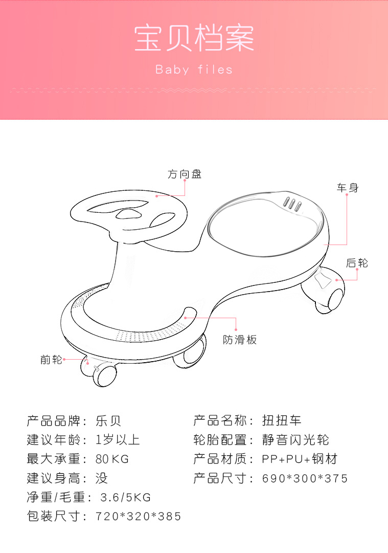 乐贝静音闪光轮免安装扭扭车LB1801