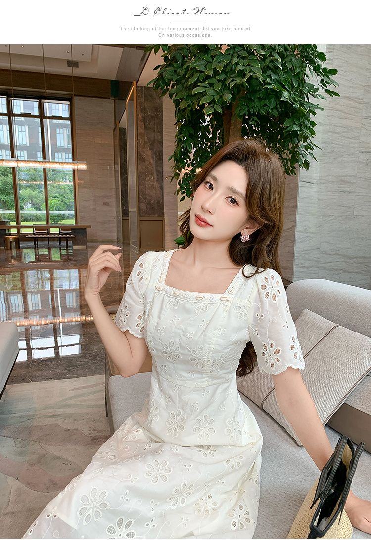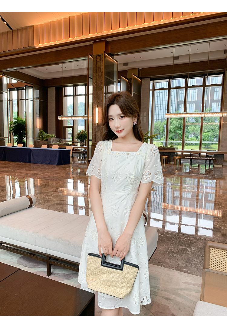 奢姿大码女装2025夏季减龄镂空刺绣小众连衣裙胖妹妹时尚方领裙子9952822037
