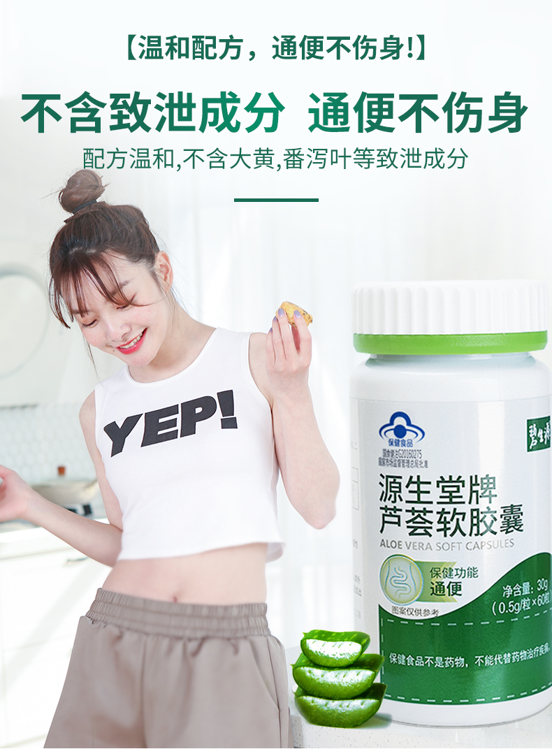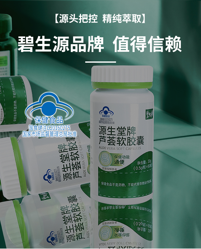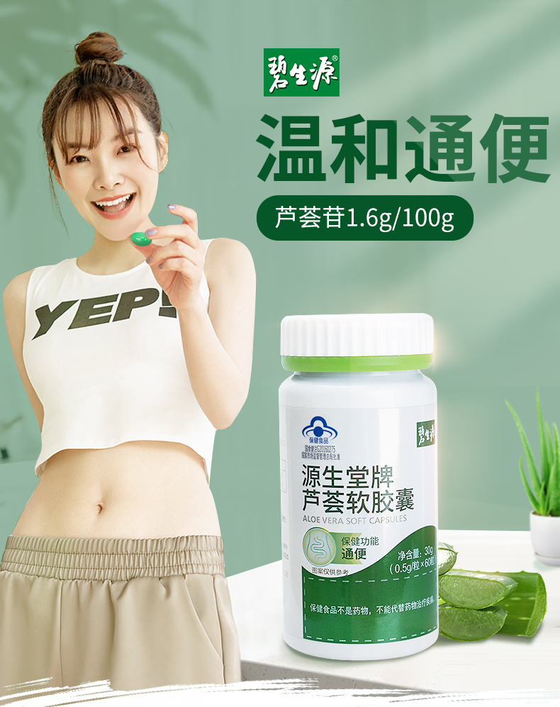 【温和通便】碧生源官方正品芦荟软胶囊保健认证 植物配方温和不伤身 含芦荟苷、大豆油
